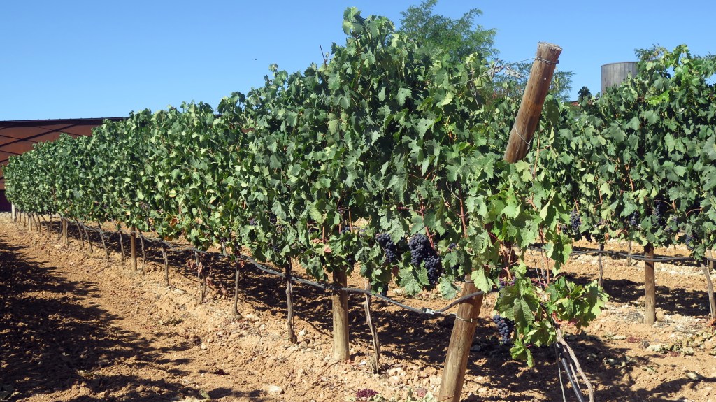 Esta es una zona bien conocida por nosotros. Por mí, porque la Ribera es mi cuna, me he pateado sus pueblos y caminos, tanto por devoción como por obligación, especialmente en la década de los ochenta de pasado siglo, cuando se incubaba el proceso que condujo al nacimiento de la Denominación de Origen y yo empezaba mi vida profesional como periodista. Por el Colega, por afición propia y porque cada vez que hacemos una ruta por la comarca le doy la chapa con mis andanzas de antaño. Él, que se las conoce bien de tanto oírlas, pone cara de hacerme caso, pero yo noto que su atención pasa a modo automático. Para disimular, de vez en cuando responde, ya, ya.