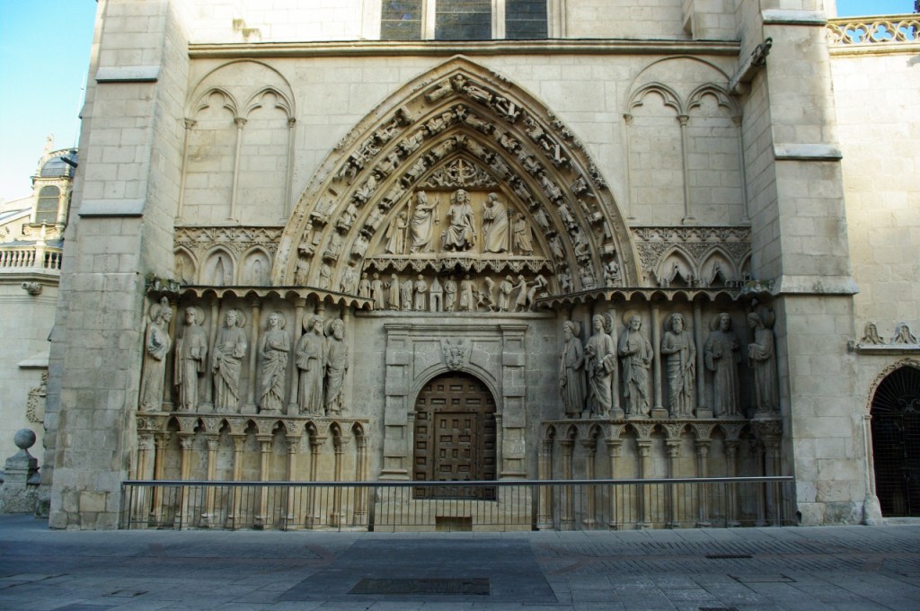La catedral es la carta de presentación y el corazón de Burgos. Sus cuatro portadas se abren, respectivamente, a la plaza de Santa María -la portada principal-, la calle Fernán González -puerta de Coronería-, la Llana de Afuera -puerta de Pellejería- y la Plaza del Rey San Fernando -del Sarmental-.