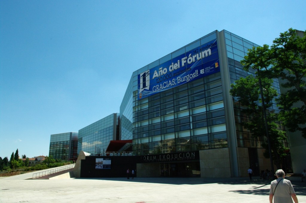 El Museo de la Evolución Humana 👇, destinado a guardar los fósiles de cerca de un millón de años de los homínidos encontrados en la Sierra de Atapuerca, es lo más moderno de la ciudad. Obra del arquitecto Juan Navarro Baldeweg, se levanta a la orilla del río Arlanzón, que lo separa de la catedral, a la que mira de frente. El vanguardista edificio se alza en los terrenos ocupados otrora por el monasterio de San Pablo y luego por los cuarteles de Caballería.