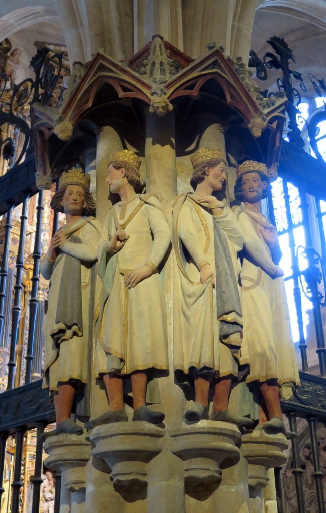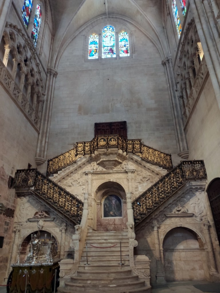 De este tiempo también es la rejería del Maestro Hilario. Declarada patrimonio de la Humanidad en 1984, su visita agotaría una jornada completa y aún quedarían detalles pendientes. (Para una visita más detenida, clica aquí 👇). Sus claustros superior e inferior muestran el esplendor del Burgos de los siglos XIV y XV.