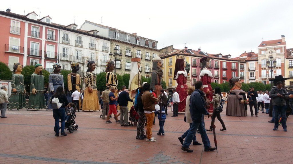 Así, pues, el carácter militar de la ciudad pertenece más bien al pasado. Más fácil que toparse con un militar el visitante corre el riego de hallarse inmerso en alguna de las muchas fiestas que aquí se celebran a lo largo del año. Los Titos por San Antón, el hermanamiento francés por San Lesmes, los carnavales, el canto de las Marzas, la Semana Santa, declarada de interés regional y nacional, la romería de la Virgen Blanca, la jira en el Parral por el Curpillos, incluso una fiesta cidiana. Todo ello con el acompañamiento de los gigantones, de las peñas o de los Danzantes, un grupo de doce niños menores de 14 años vestidos como pajes del siglo XVI, que danzan a los sones de dos dulzaineros y un tambor, acompañados de los tetines, adultos que dirigen a los danzantes, el tetín mayor vestido de azul, y los tres restantes, de verde. Los burgaleses pueden ser algo asperones, pero jaraneros, como los primeros.