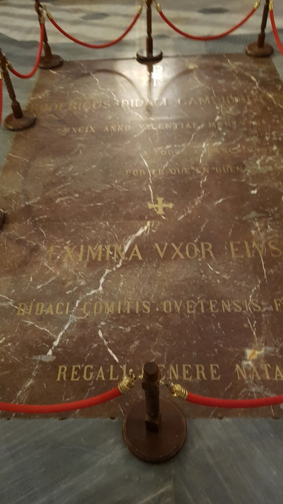 En la vertical del cimborrio, después de una peripecia secular, descansan los restos de Rodrigo Díaz de Vivar, el Cid, y su esposa Jimena Díaz.