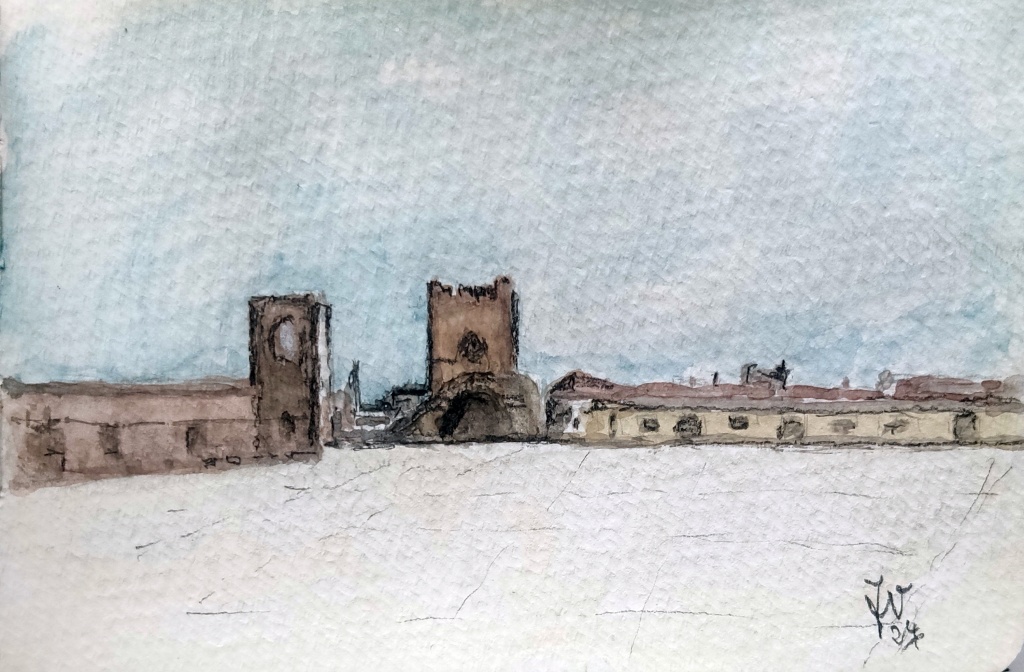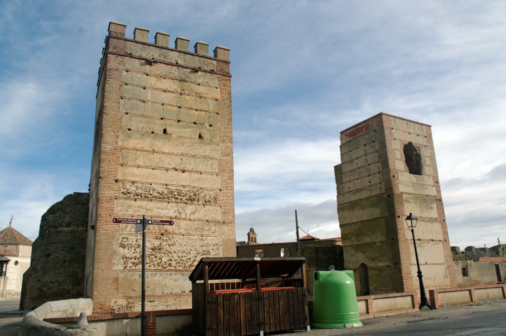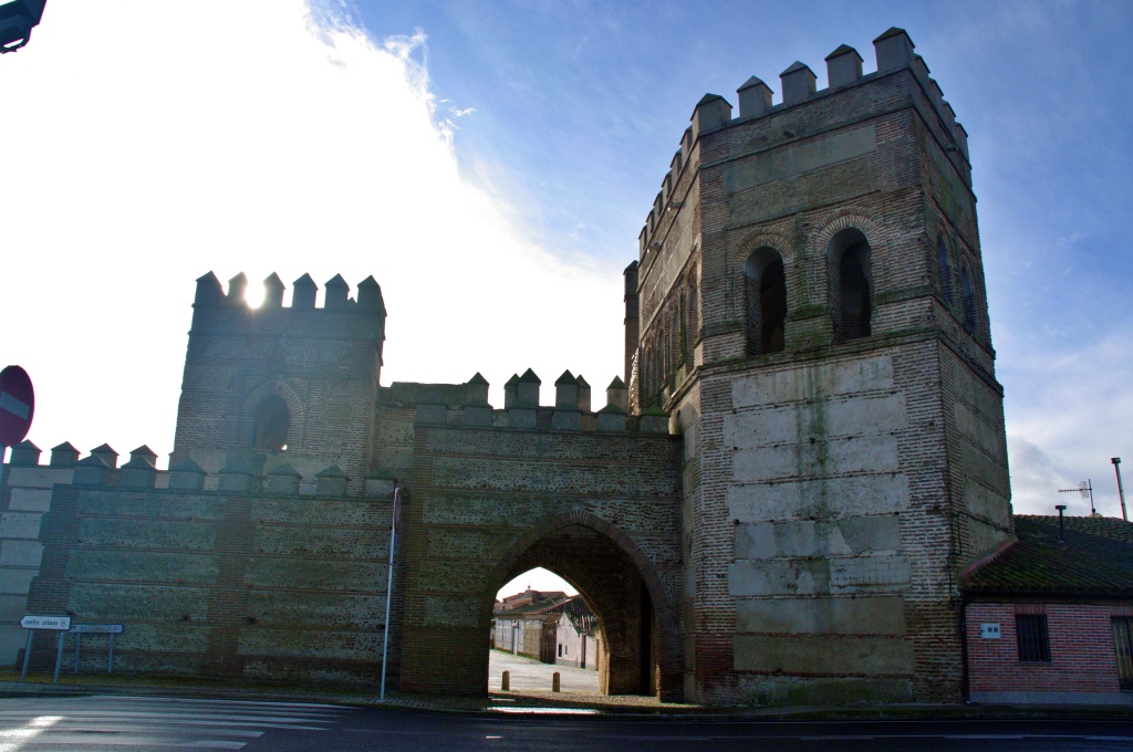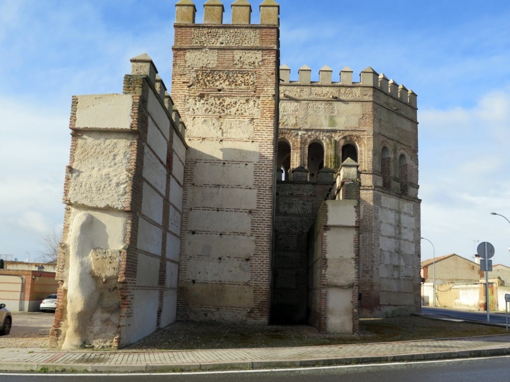Llegues desde donde llegues, para entrar en la villa has de atravesar una de las cuatro puertas de su muralla, ejemplo de arquitectura militar medieval y del sistema constructivo mudéjar👇. La cerca encierra una superficie de 39,04 hectáreas adaptándose a los accidentes topográficos del terreno. Consta de su existencia ya en 1302, pues ese año las cortes de Medina mandan su derribo por haberse levantado sin autorización del concejo de Arévalo, a cuya jurisdicción pertenecía Madrigal. El añadido “de las Altas Torres” es una licencia poética incorporada en el siglo XIX que, al parecer, alude a las torres de las murallas.