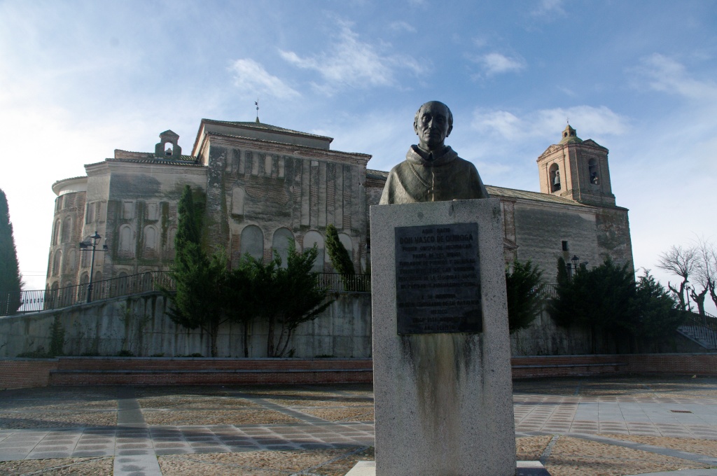 Entrando desde Salamanca, llama la atención enseguida la iglesia de Santa María del Castillo👇, que debe el nombre a hallarse sobre una loma donde quiere la tradición que antes hubiera una fortaleza. De estilo románico mudéjar, muy reformada en el siglo XVI. Frente a la iglesia, una escultura homenajea a Vasco de Quiroga, uno de los hijos ilustres de la villa.