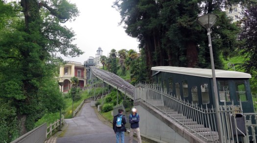 Para superar el desnivel entre el bulevar y la estación de ferrocarril, que está junto al río, desde 1908 funciona un funicular que sube y baja con una frecuencia de entre 3 a 5 minutos, gratis total. Nosotros lo utilizamos para descender del bulevar al río, paseamos un rato entre una agradable arboleda antes de cruzar el puente hacia el antiguo lavadero, situado a la derecha.