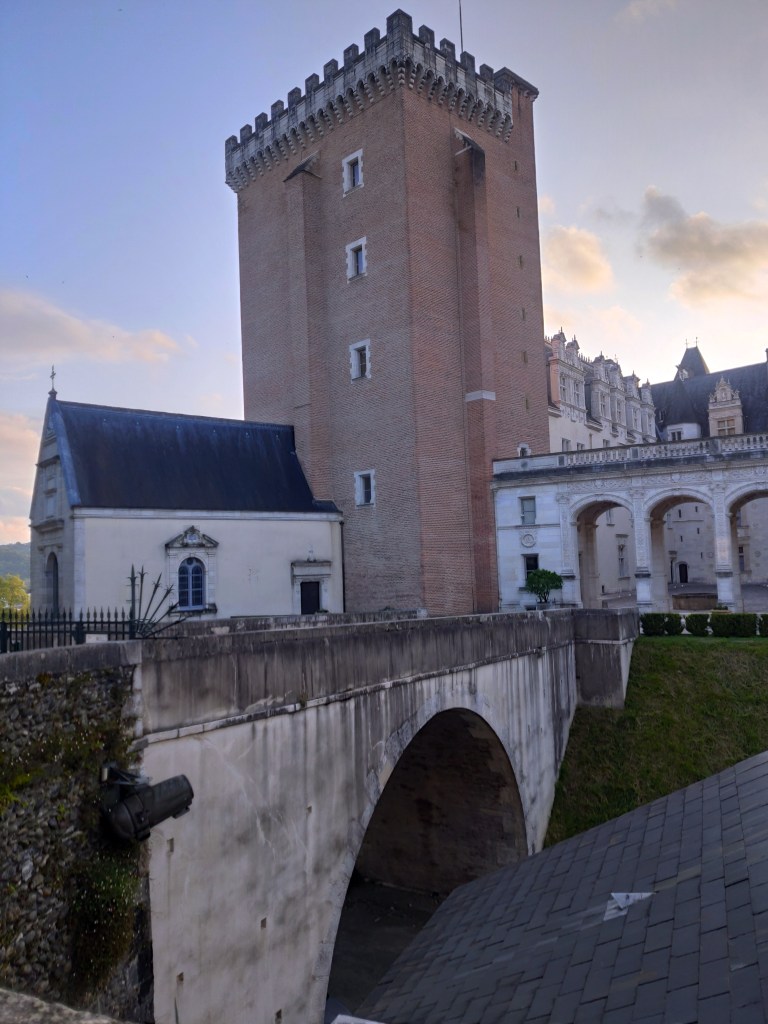 La ciudad antigua se levanta sobre un promontorio coronado por el castillo que se divisa desde cualquier punto de la ciudad y alrededores, con el río Gave a sus pies. El castillo feudal fue fortaleza de los vizcondes de Bearn, fortificado en tiempos de Gastón Febo, a quien se debe la construcción en ladrillo de la torre del homenaje, con una altura de 33 metros. Enrique de Albret y María de Angulema lo transforman en residencia real en el Renacimiento, que a lo largo de los siglos ha sido palacio real, imperial o nacional y, actualmente, museo. Es famoso porque el 13 de diciembre de 1553 vio nacer a Enrique III de Navarra, que habría de ser el primer rey Borbón de Francia, como Enrique IV, conocido como Buen Rey, monarca querido por los franceses. Educado por su madre en la fe protestante, se convirtió al catolicismo para ser proclamado rey. Suya es la frase París bien vale una misa. A él está dedicado el museo, en su interior guarda una notable colección de tapices flamencos y gobelinos de los siglos XVI al XVIII y algunas curiosidades como la llamada sala de los cien cubiertos, con su enorme mesa de roble, la cuna en forma de caparazón de tortuga en la habitación del rey o las porcelanas del apartamento de la emperatriz Eugenia.