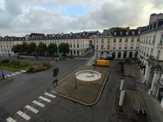 Cenamos en un bistrot donde, siguiendo el ritual de todos los viajes a Francia, pido los caracoles a la bourgiñona, que, con el agua Perrier son mi santo y seña francés. Hemos elegido el céntrico hotel De Gramont, próximo a un aparcamiento, ya que la circulación rodada está bastante restringida en la ciudad. La vista desde nuestra habitación nos muestra una imagen resumen de Pau.