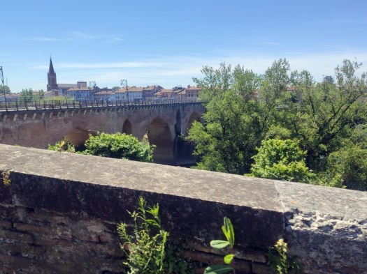 El Puente Viejo es obra del siglo XIV con siete arcos ojivales sobre el río Tarn. Se concluyó en 1335. Mide 205 metros de largo y 23 de alto. Como en el puente de Toulouse, sus aberturas le permiten resistir las crecidas del río. Es el puente más antiguo de la ciudad, monumento histórico desde 1919 y la imagen icónica de Montauban. El andamiaje de las obras nos impide hacer una foto decente a cambio de ofrecernos aparcamiento gratis.