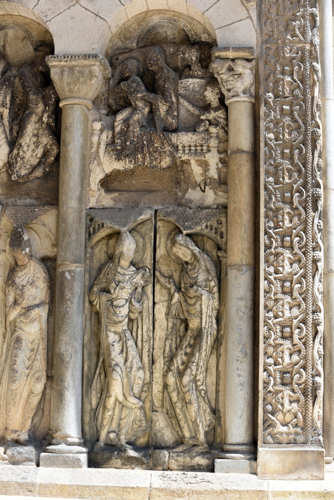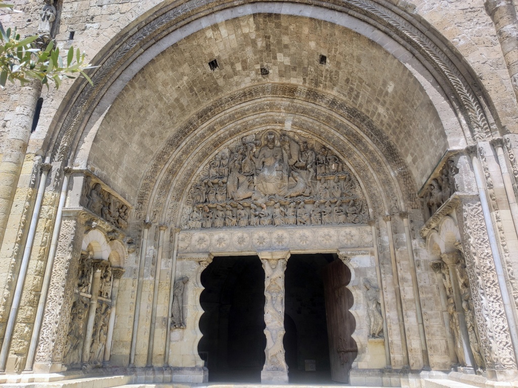 Por muchas veces que lo hayas visto es imposible no admirarse ante la portada de Moissac, realizada en el siglo XII, y bendecir la memoria de los artistas anónimos que aquí trabajaron. Parece milagroso que haya llegado hasta nosotros después de los innumerables ataques sufridos en los últimos nueve siglos. El penúltimo de estos ataques ocurrió durante la Revolución francesa, cuando fue vendida a un particular y luego, a la ciudad. Durante un motín fueron saqueados el claustro, la iglesia, su mobiliario, sus vidrieras, ornamentos y el tesoro sacro. Durante el Primer Imperio, los edificios se convirtieron en cuartel y luego, en una fábrica de sal. Ya en el siglo XIX, los ingenieros del gobierno francés diseñaron un trazado ferroviario que a poco termina definitivamente con la abadía. Se salvó el claustro, que pasa rozando, pero se llevó el refectorio y las cocinas.