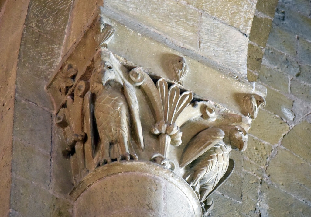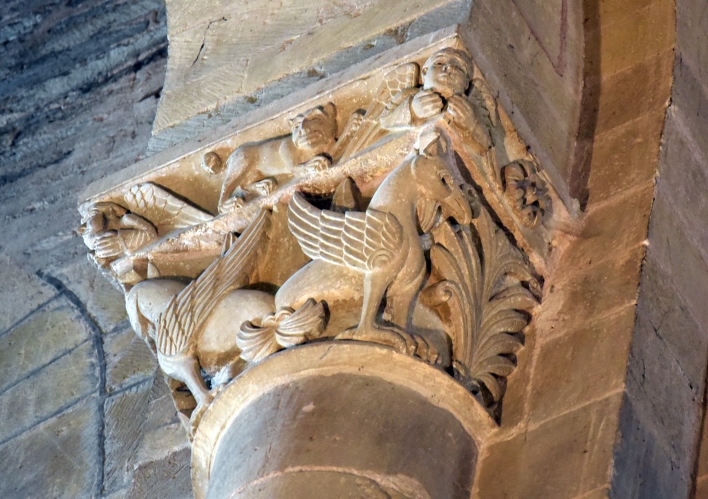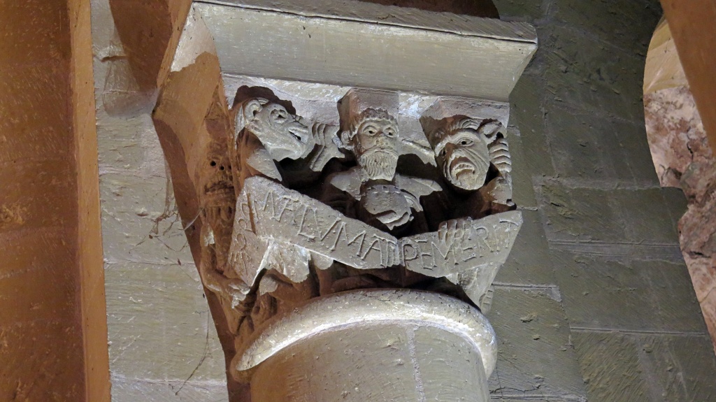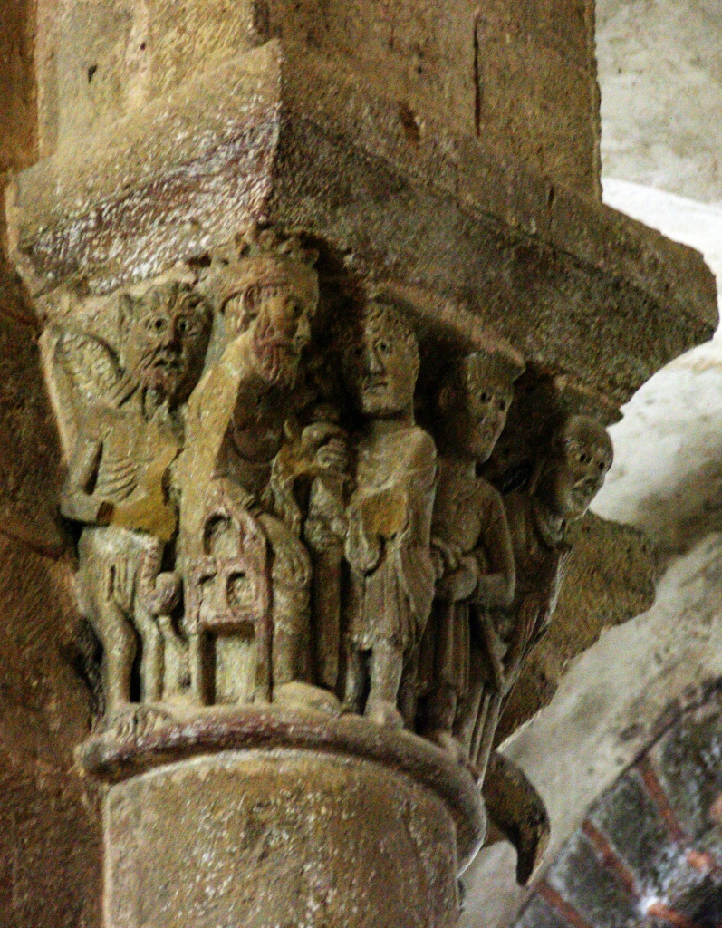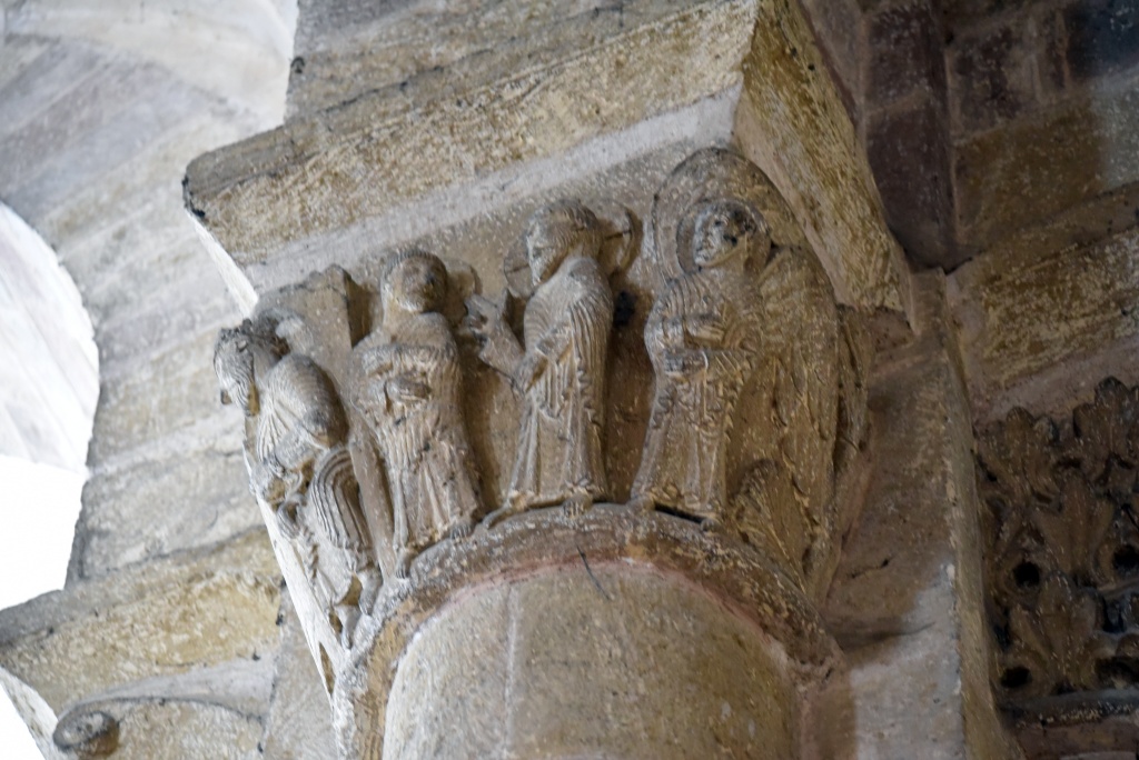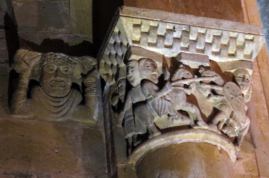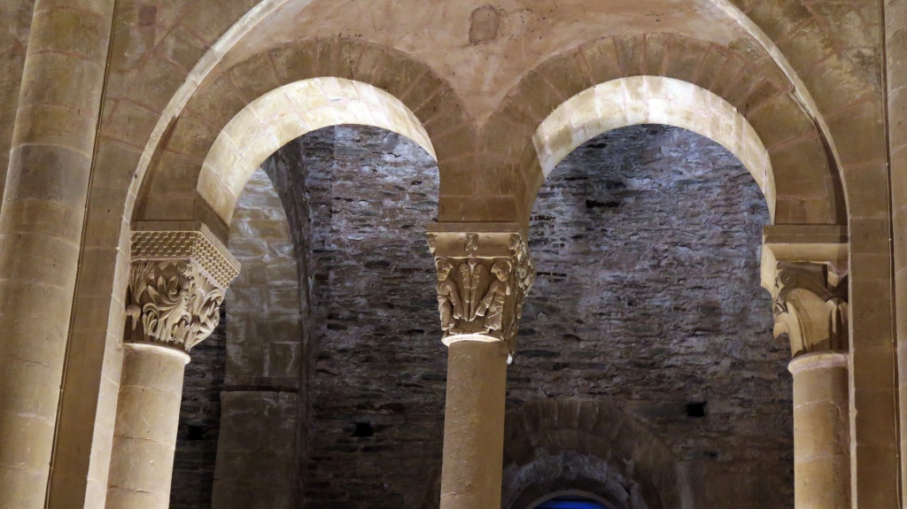 La condena de Santa Fe, el Cristo con las dos copas, el reencuentro de Pedro y el Maestro, la crucifixión de Pedro, la ascensión de Alejandro Magno, el avaro, la sirena, los grifos, las águilas, el ángel, capiteles e imágenes ofrecen otra perspectiva, se diría que nos miran directamente. Recorremos las naves y la girola una y otra vez haciendo pequeños descubrimientos.