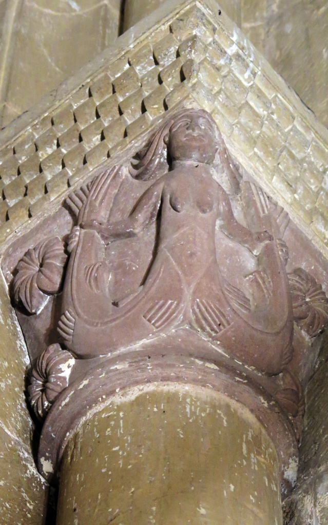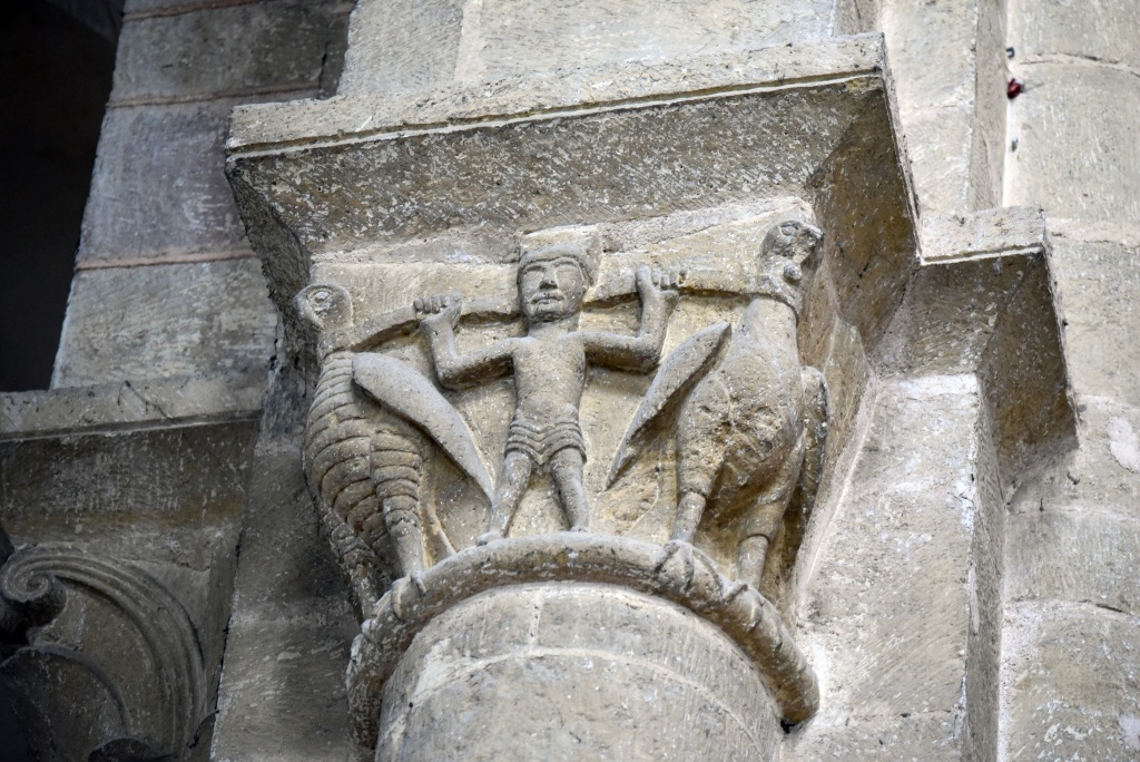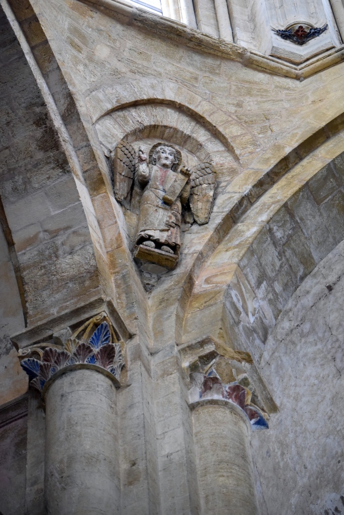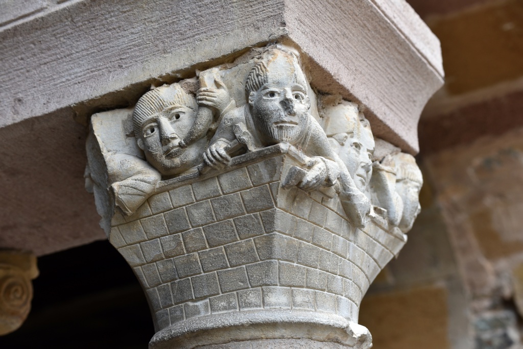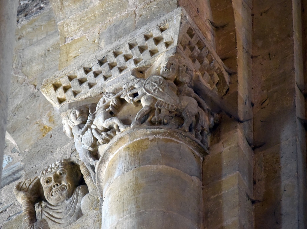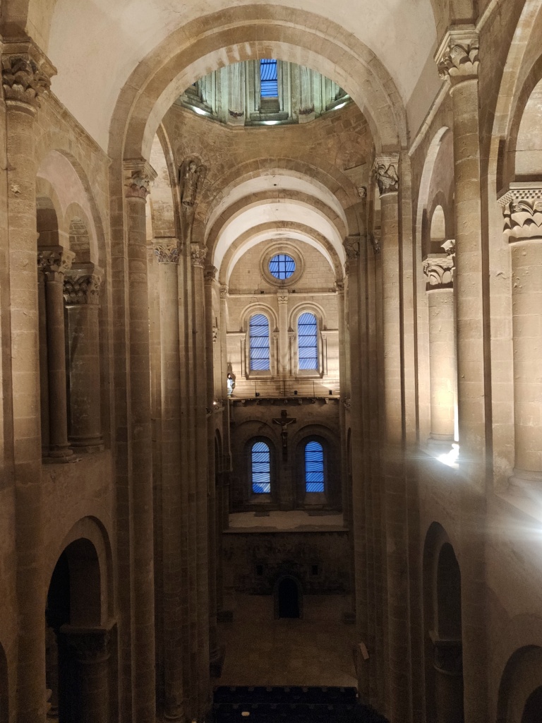 La condena de Santa Fe, el Cristo con las dos copas, el reencuentro de Pedro y el Maestro, la crucifixión de Pedro, la ascensión de Alejandro Magno, el avaro, la sirena, los grifos, las águilas, el ángel, capiteles e imágenes ofrecen otra perspectiva, se diría que nos miran directamente. Recorremos las naves y la girola una y otra vez haciendo pequeños descubrimientos.