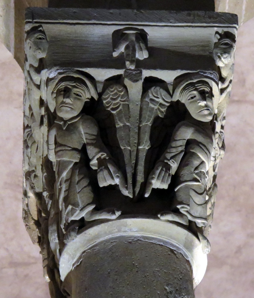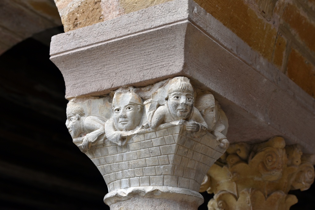 En el claustro, los ocupantes del capitel del barco nos miran con ojos de eternidad.