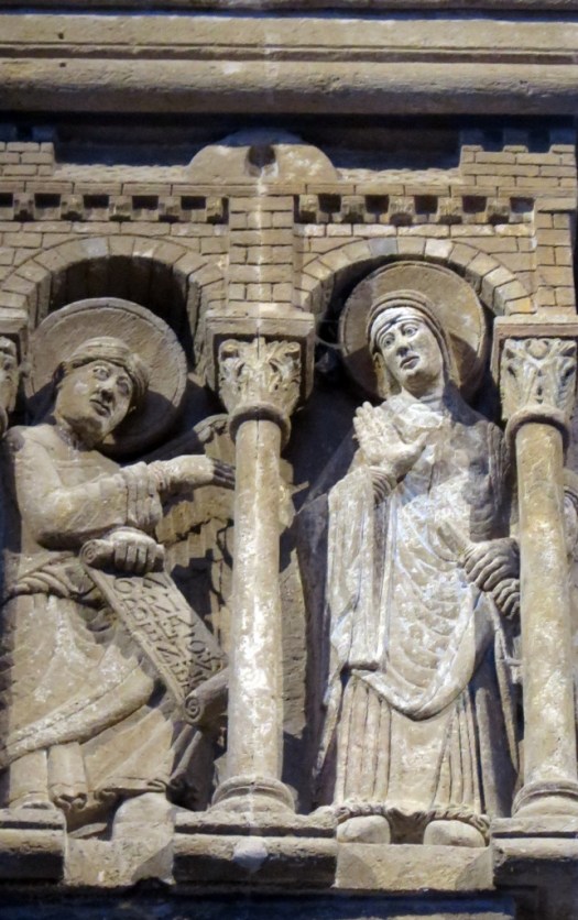 Admira la perfección de la Anunciación, situada en el brazo izquierdo del transepto, que se atribuye al mismo autor que trabajó en el tímpano.