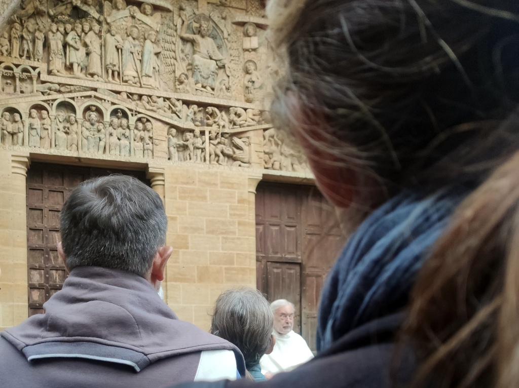 Luego, salimos todos mientras se prepara el concierto. El mismo cura se planta bajo el tímpano explicando cada escena y el significado del mismo. A medida que avanza en la explicación más me parece estar viendo al expresidente, no como fue mientras gobernó sino como es ahora que no gobierna pero pontifica.