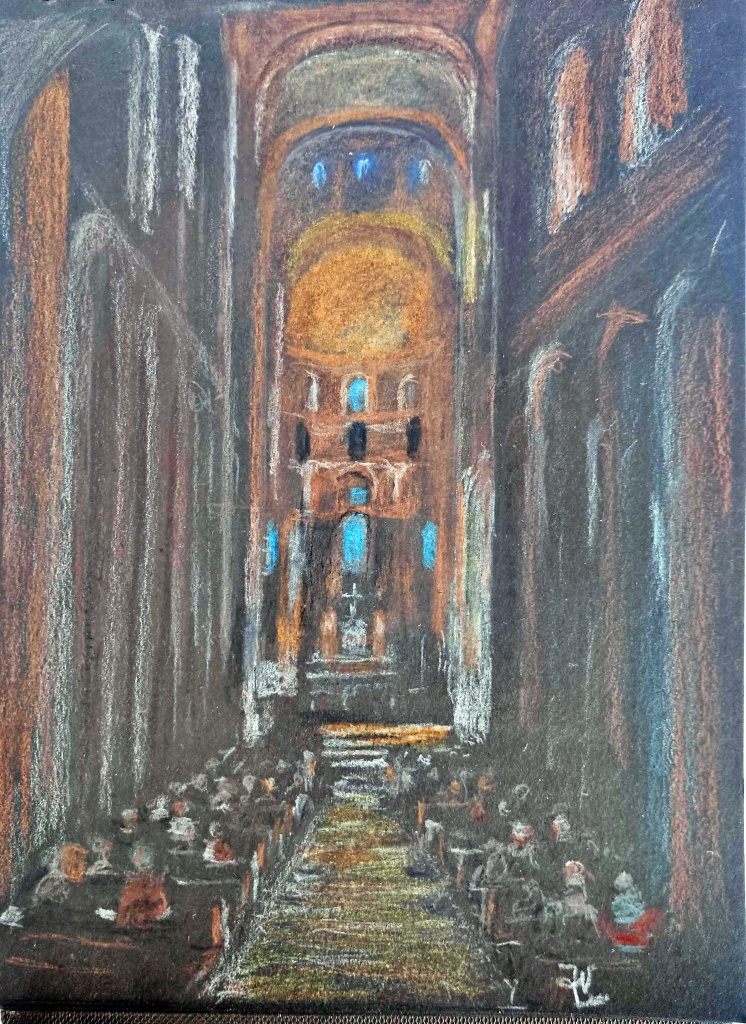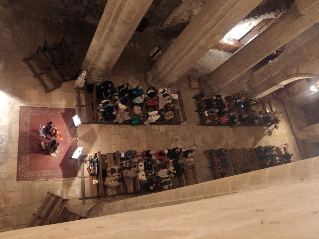 Por fin, entramos al concierto. Las dos jóvenes cantoras entonan muy bien y se acompañan de un violonchelo y otro instrumento que no identificamos. El lugar y la música nos transportan totalmente. No podemos sustraernos a la idea de estar ocupando un espacio por el que en los últimos nueve siglos han pasado miles, quizá millones de personas que, como nosotros, admiran la belleza del recinto y de cuanto contiene.