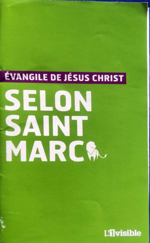 Al terminar el oficio el cura parecido a González toma una cesta y reparte un pequeño librito a quienes se acercan hasta él. Le hago una seña al Colega para que vaya, me dice que no, así que voy yo. Es un ejemplar del Evangelio según San Marcos.