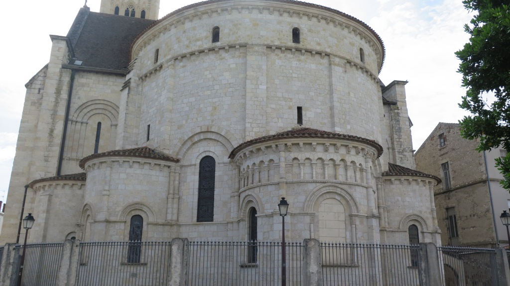 Así que nos encaminamos a la catedral de San Caprasio -Saint Caprais-, obra del siglo XII, que ha vivido no pocas peripecias a lo largo de su historia. Construida inicialmente como colegiata, pasó a catedral en 1803, después de que la Revolución destruyese la de San Esteban, sede de la diócesis de Agen. Este es un caso de reutilización según los vientos de la historia. La actual fábrica se construyó sobre una basílica anterior del siglo VI, destruida por los normando en el IX. Las guerras de religión la dañaron y la Revolución la utilizó como almacén de forraje.