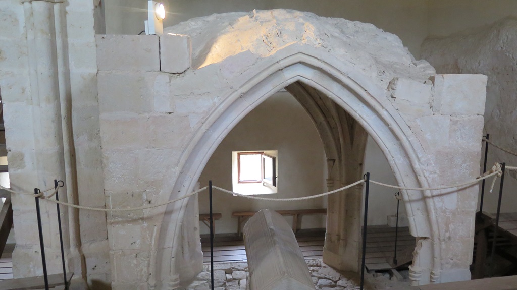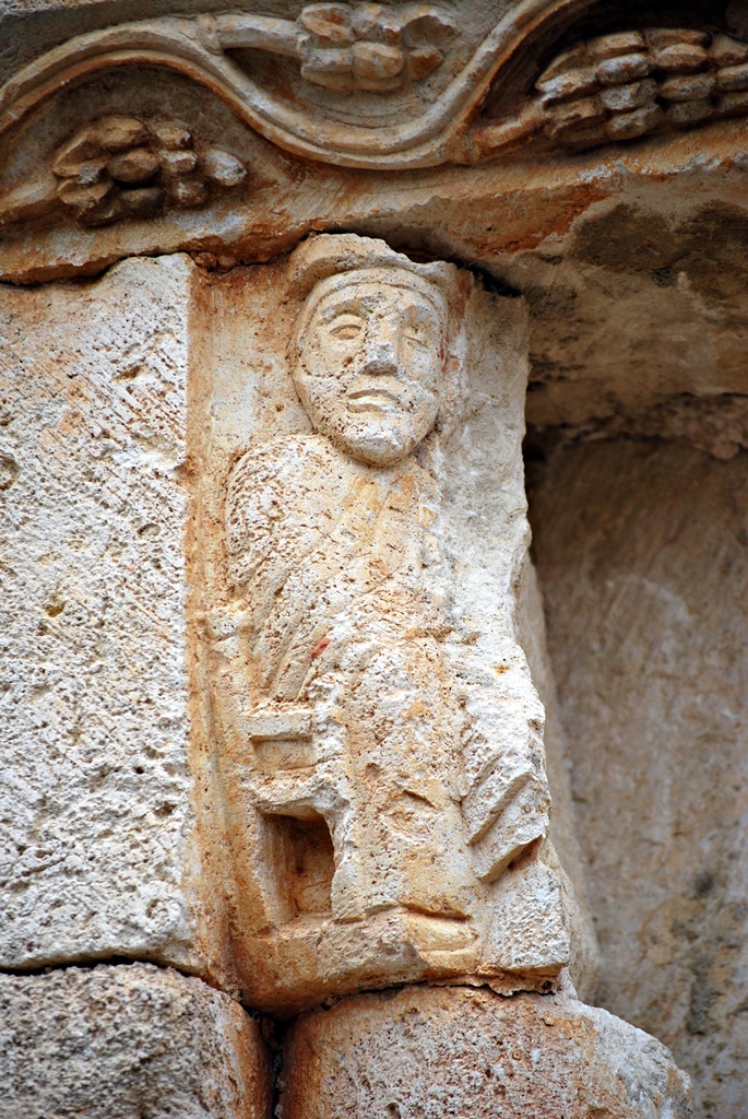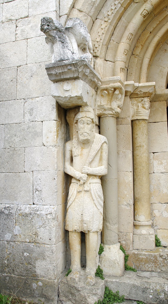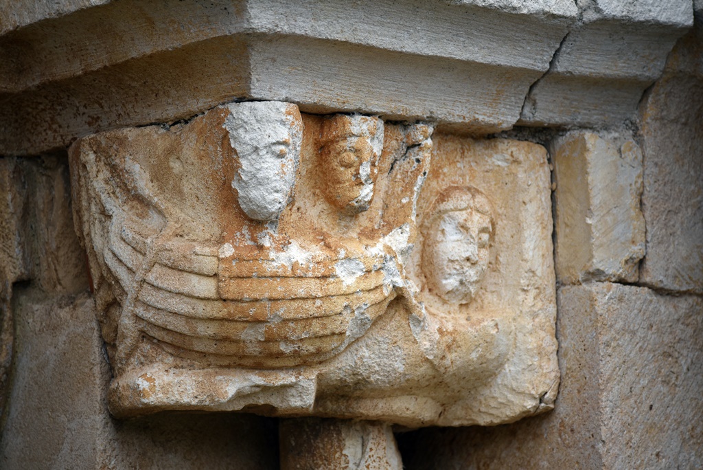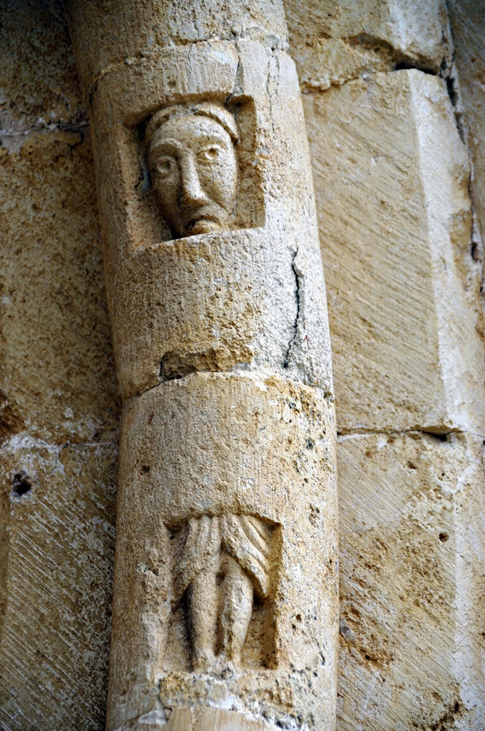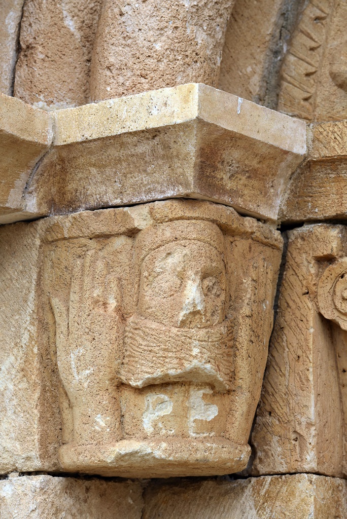 En la segunda de las arquivoltas aparecen figuras emparedadas de las que solo se ven la cabeza y los pies, imágenes que se repiten en la ventana sur del ábside, sin que se conozca con precisión su significado.
