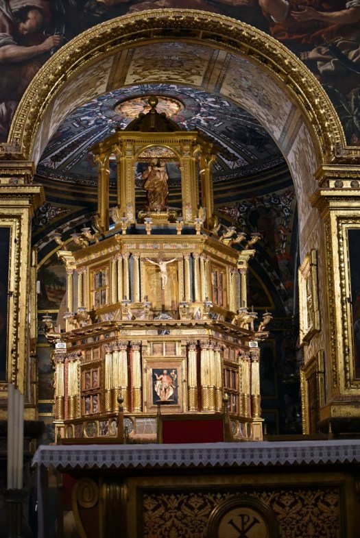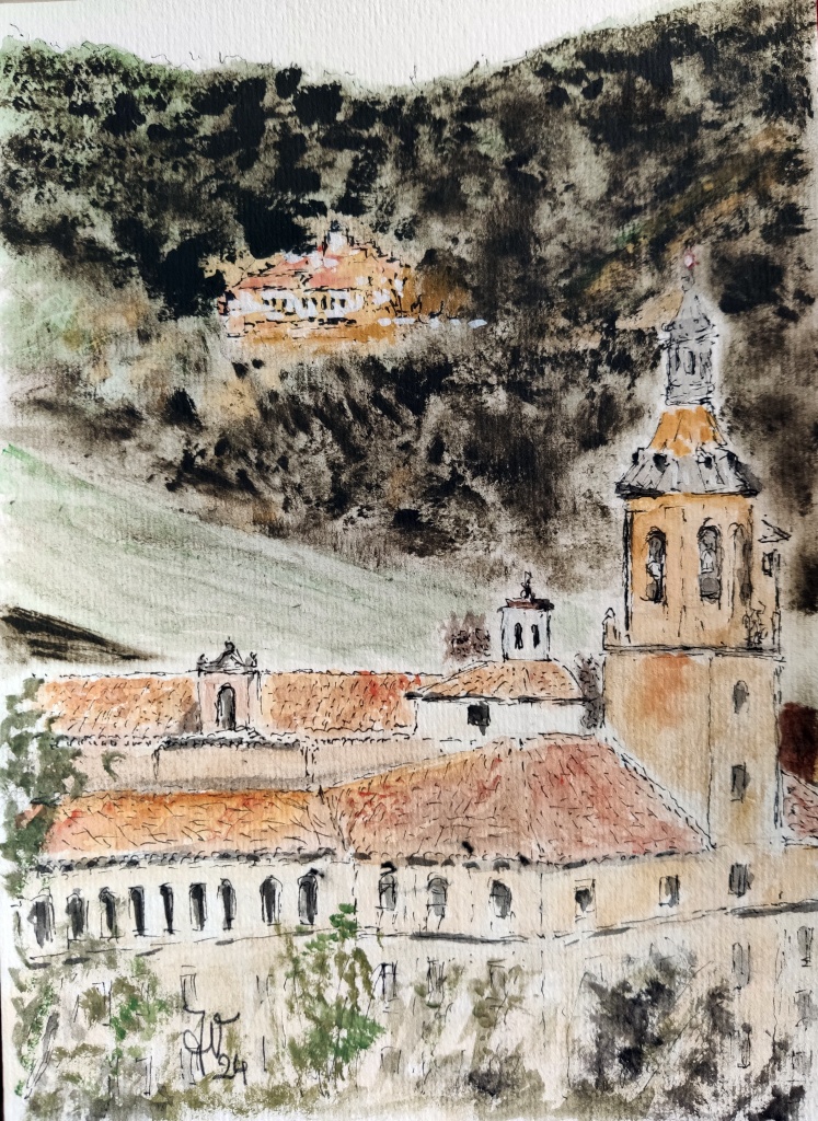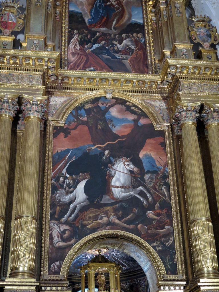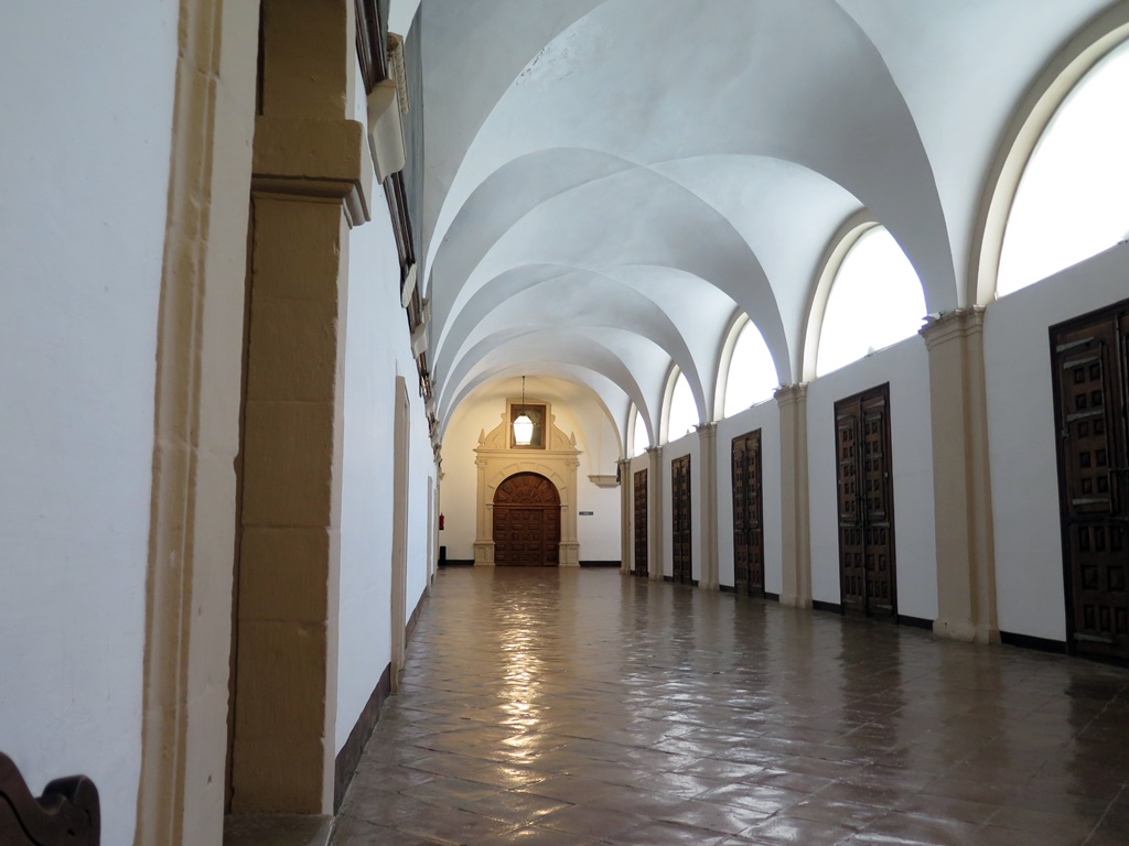 A decir verdad, la iglesia luce esplendorosa con sus muchos dorados relucientes aunque se agradece un poco la sencillez de los claustros inacabados, el superior cubierto por acoger las dependencias monacales. Llama la atención el enlosado de este claustro, que es el original de 1616.