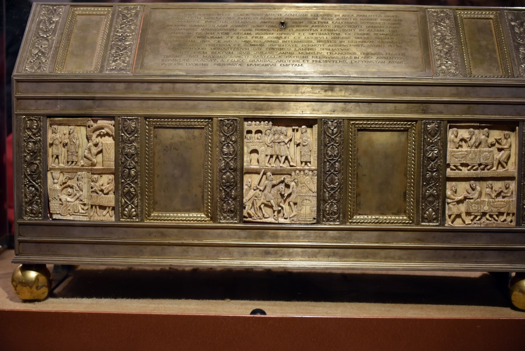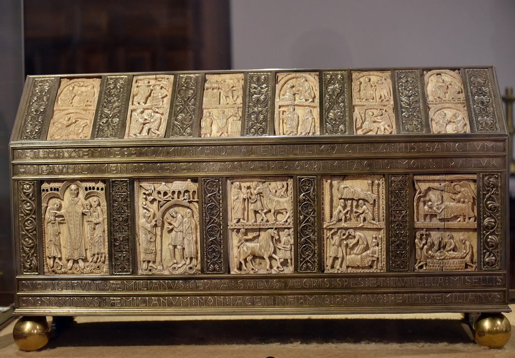 Los catorce marfiles de la arqueta de San Millán que se conservan son un relato en imágenes de la vida del santo, una especie de comic medieval. De la de San Felices se conservan cuatro de los seis que tuvo originalmente.