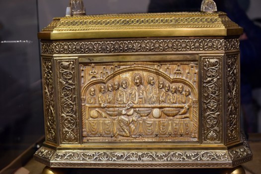 Por fin, después de muchas subidas y bajadas poco aptas para la clientela de estas visitas, entre la que abundan los jubilados y personas de edad, llegamos a la sala donde se encuentran las arcas que contienen las reliquias de San Millán y San Felices, obras maestras de la eboraria románica.