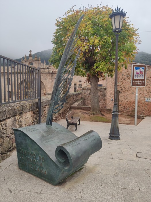 Para llegar hasta aquí el visitante ha pasado ya por Berceo, lo que es un primer aviso de que está transitando por el valle de la lengua. Por si le quedan dudas, lo primero que encuentra tan pronto pone el pie en Yuso es el monumento a la lengua castellana.