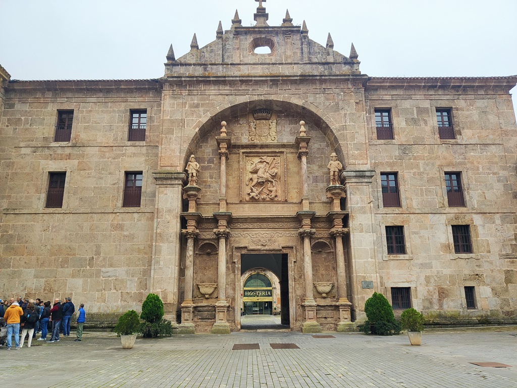Contentos como estamos, alimentados nuestros espíritus, nos disponemos a comer. Dudamos entre la hostería del monasterio y un restaurante situado enfrente, que lleva también el nombre del santo. Entramos en una tienda a comprar vituallas de la tierra, donde nos indican que en ambos comeríamos bien pero en la hostería estaríamos acompañados por quienes viajan en grupos organizados, lo que nos decide por el otro en busca de tranquilidad. En este restaurante nos proporcionan una mesa junto a la ventana desde la que se divisa un apacible paisaje, ahora que ha despejado la niebla. Comemos muy bien. Mientras tomamos un café vemos llegar tres autobuses cargados de visitantes, que descargan junto a la hostería. De la que nos hemos librado, decimos al unísono, mientras admiramos la sabiduría y el pragmatismo de quienes gestionan el emporio de la lengua que es San Millán de la Cogolla.