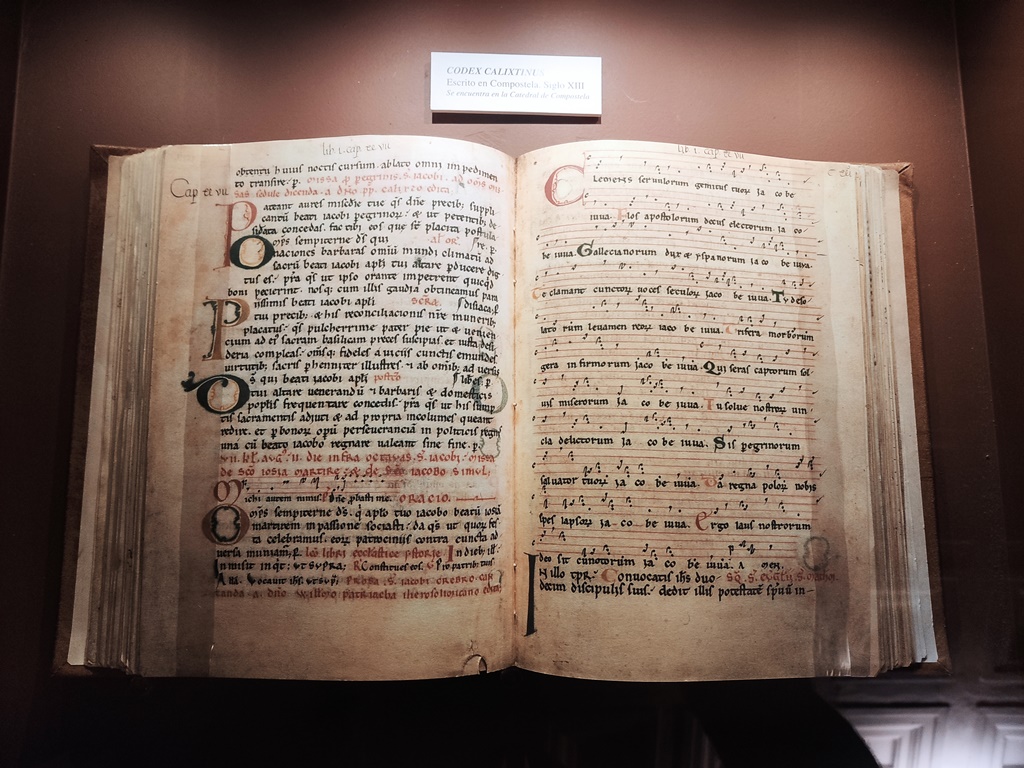 Sin restar mérito a los dorados y floripondios de esta parte de Yuso, que para gusto se hicieron los colores, a nosotros nos llevan sobre todo los marfiles románicos de las arcas y la exposición de códices y cantorales, que dan una idea de lo que fue el scriptoriun medieval. Aparte de los veinticinco cantorales, copias de entre 1729 y 1731, nos gustaron los facsímiles del Códice Calixtino y de la Gramática de Lebrija. El archivo y la biblioteca de la abadía están considerados entre los mejores de España, de gran valor para los investigadores.