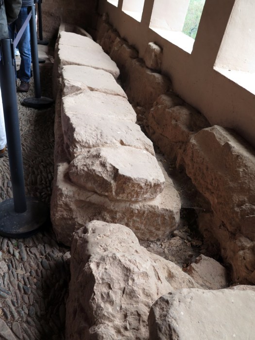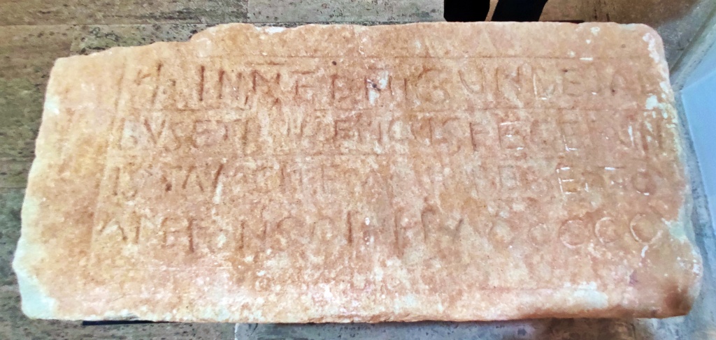 La primera de estas inscripciones, en latín y letra visigótica, sería copia de la original, rescatada de la ermita de San Julián y depositada en el Museo de Burgos. «En nombre del Señor Gundesalvo y Friderico hicieron esta ciudad bajo el rey don Alfonso en la era de 900«, reza.