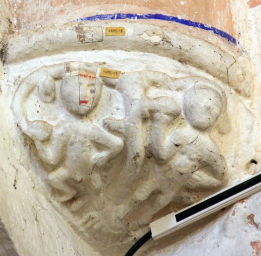 La cabecera conserva algunos capiteles que hechura tosca, nada que ver con los de la portada, parece evidente que en la iglesia trabajaron maestros de al menos dos talleres distintos.