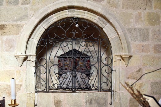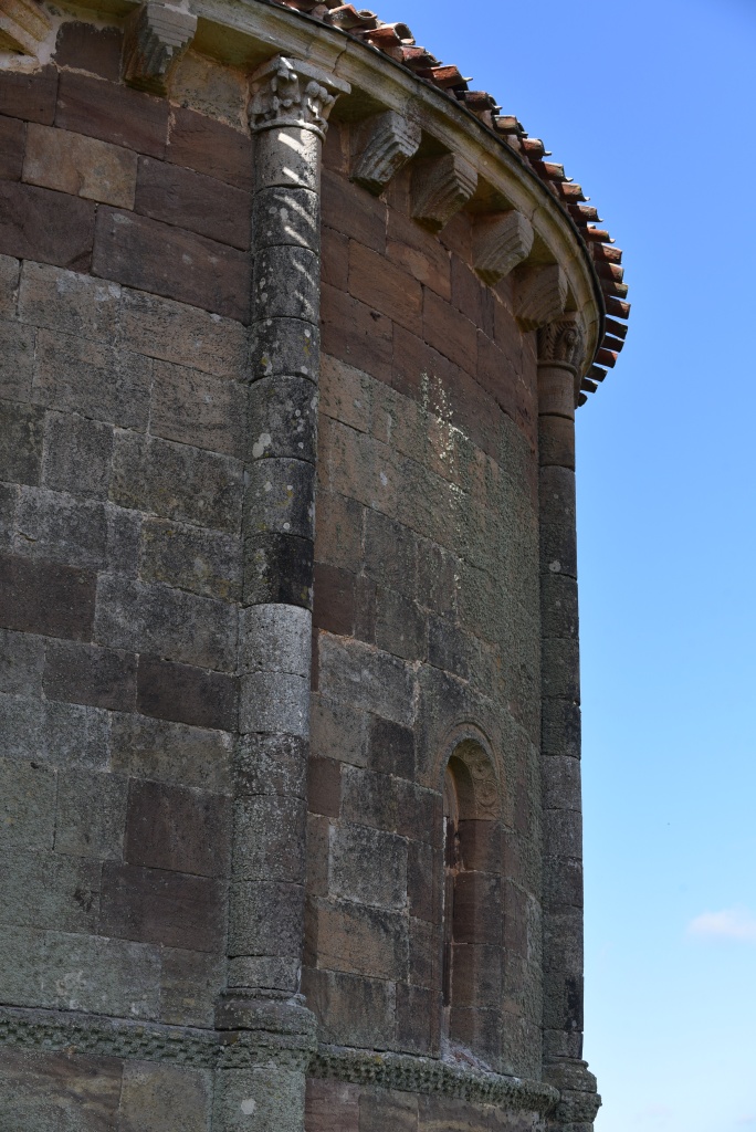Paseamos en torno a la iglesia, admirando su ábside, con dos niveles separados por una imposta en cuyo paño central se abre una saetera de medio punto.