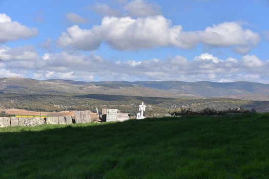 En la vertiente norte de la iglesia se extiende el cementerio del pueblo. No parece mal sitio este para descansar, como aspiraba Serrat, en la ladera de un monte, más alto que el horizonte, garantizada la buena vista.