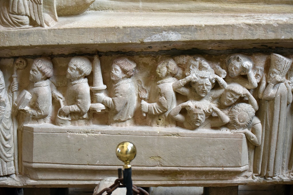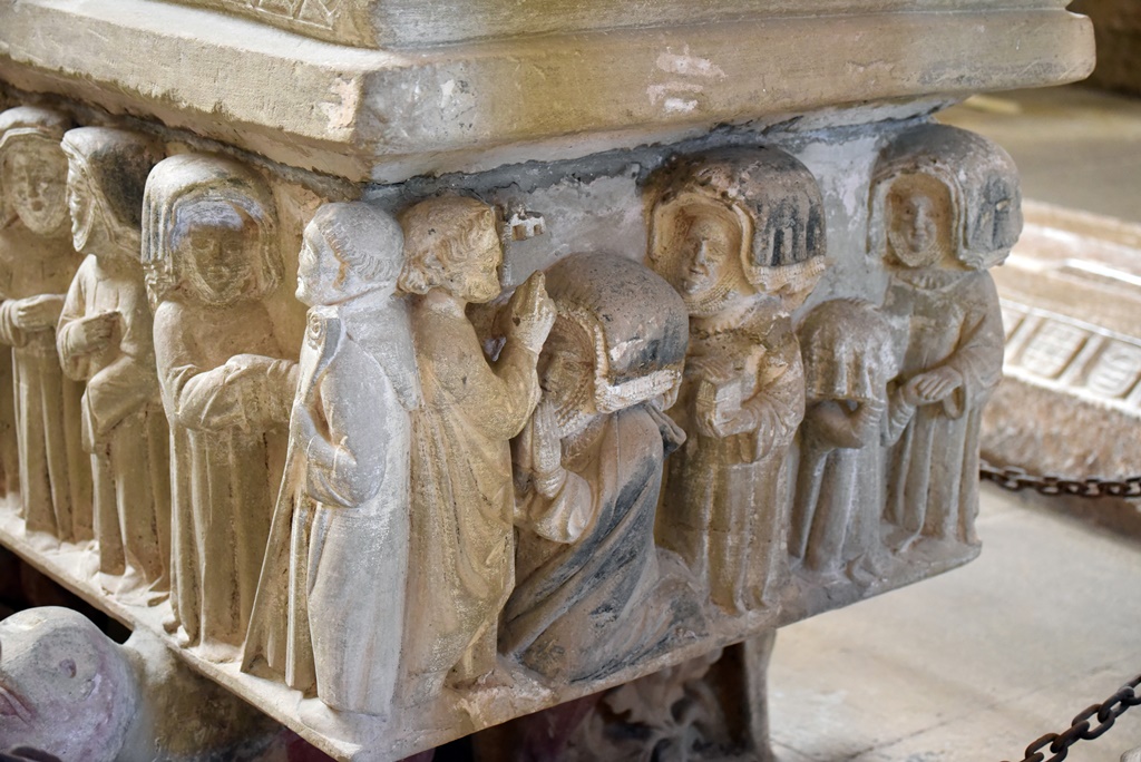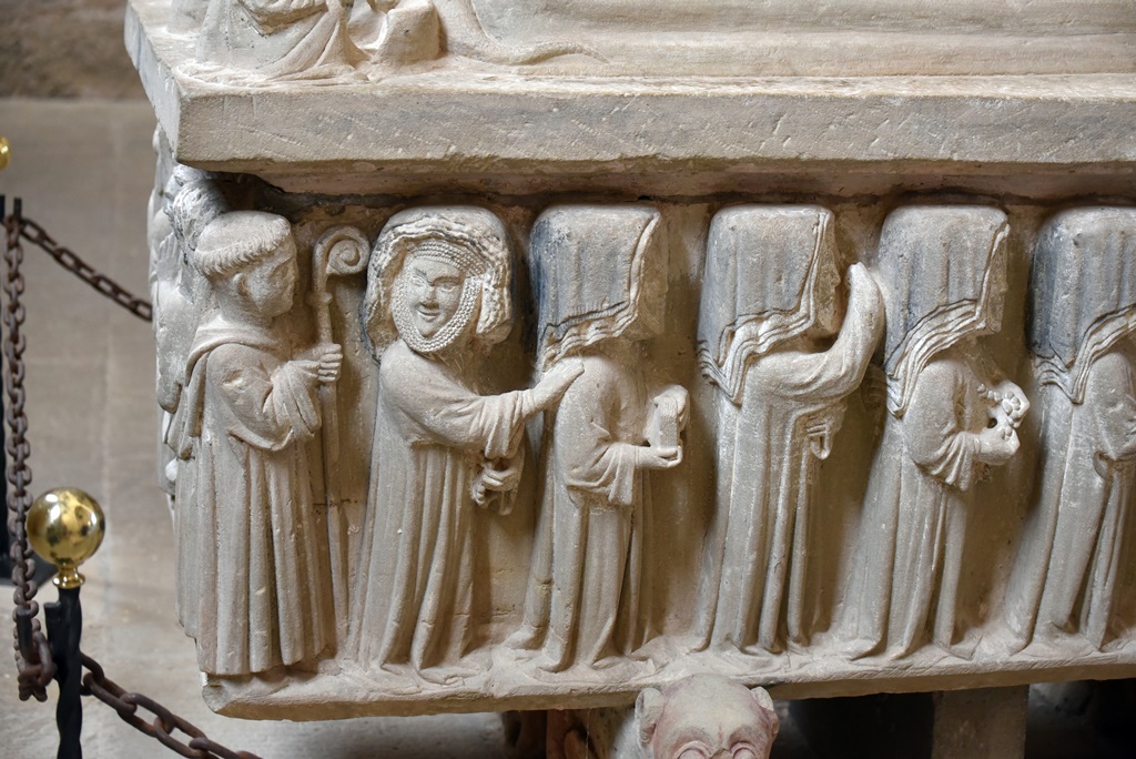 Esta Urraca López de Haro falleció en 1262, todavía abadesa, con fama de santidad. Su cuerpo descansa en un precioso sarcófago en el centro de la sala capitular, que ella había mandado hacer.