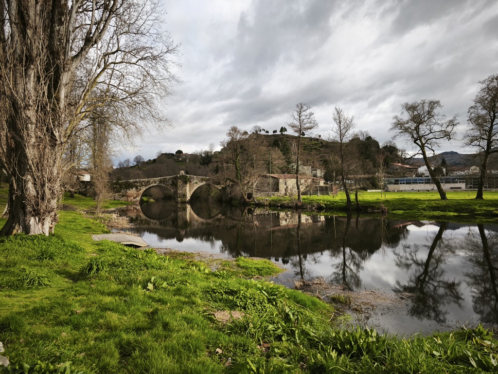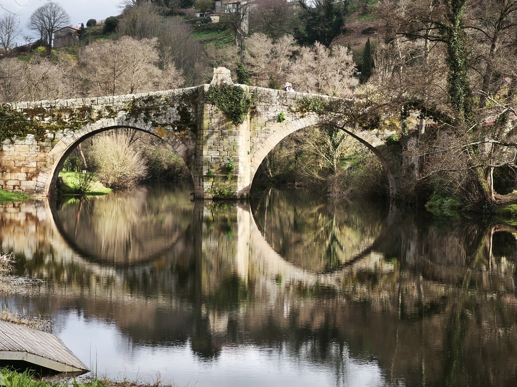 Pasamos ante la de Santa María de Vilanova en dirección al puente medieval, magnífico ejemplar, hermano pequeño del de Orense. Volvemos al hotel paseando por el bien cuidado paseo junto al río Arnoia, que bordea la villa.