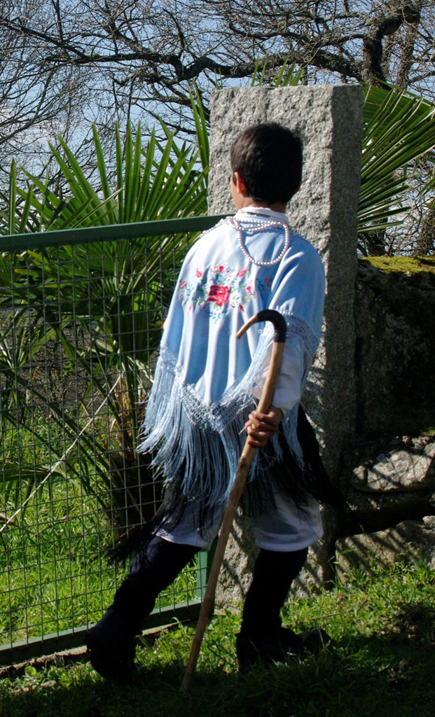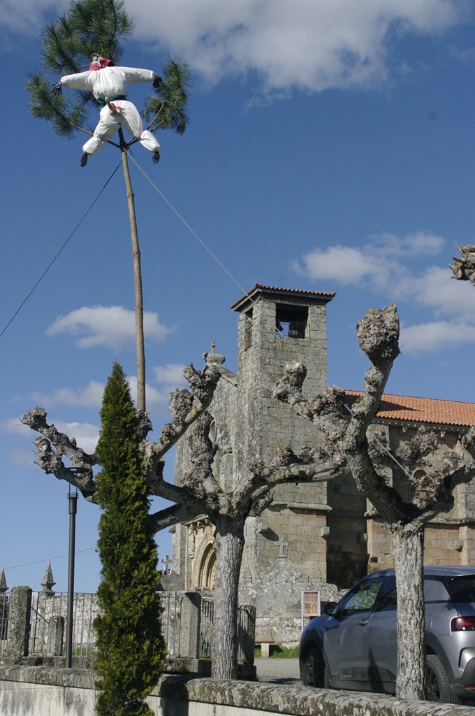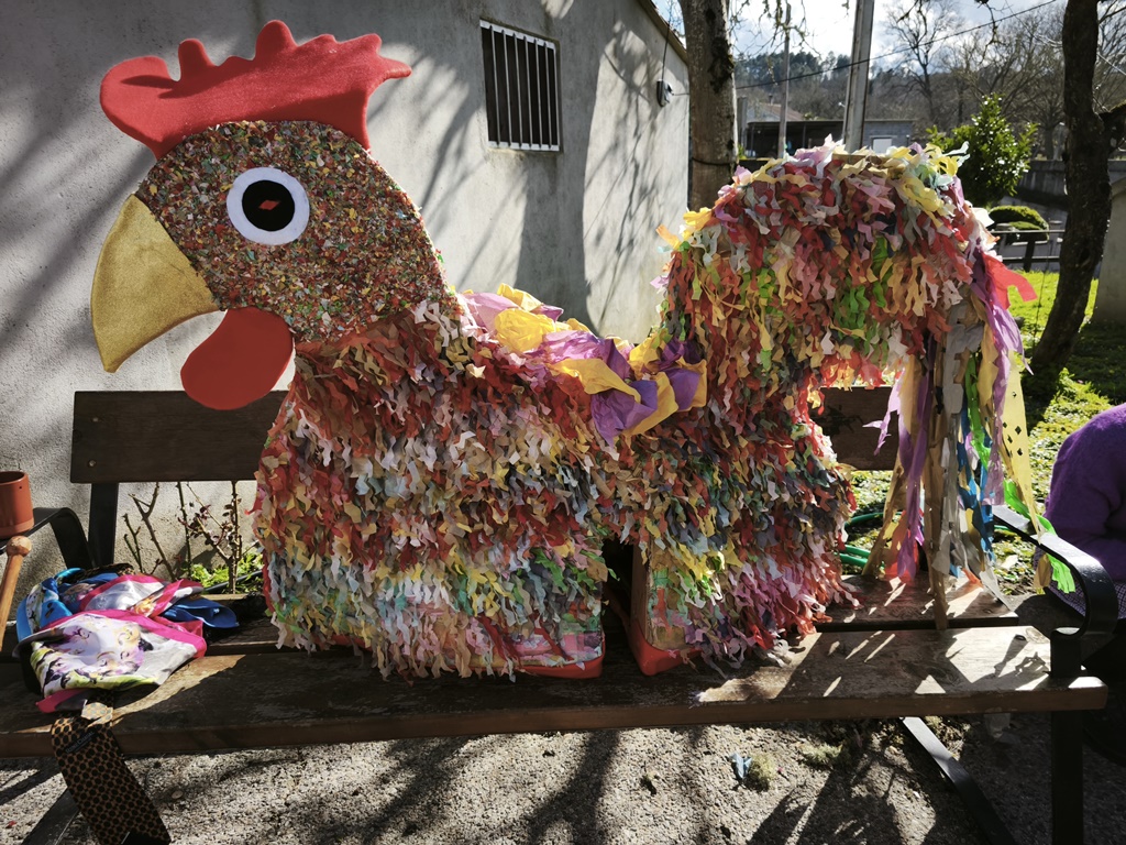 En San Pedro de A Mezquita 👇volvimos a deleitarnos con su misteriosa iglesia. Llegamos tarde al pasacalles de los gallos del entroido, uno de los participantes nos describe pieza a pieza su traje -que no disfraz- sobre el que lucían las mejores joyas familiares y nos muestra los enormes gallos que adornaban el tractor durante el desfile.