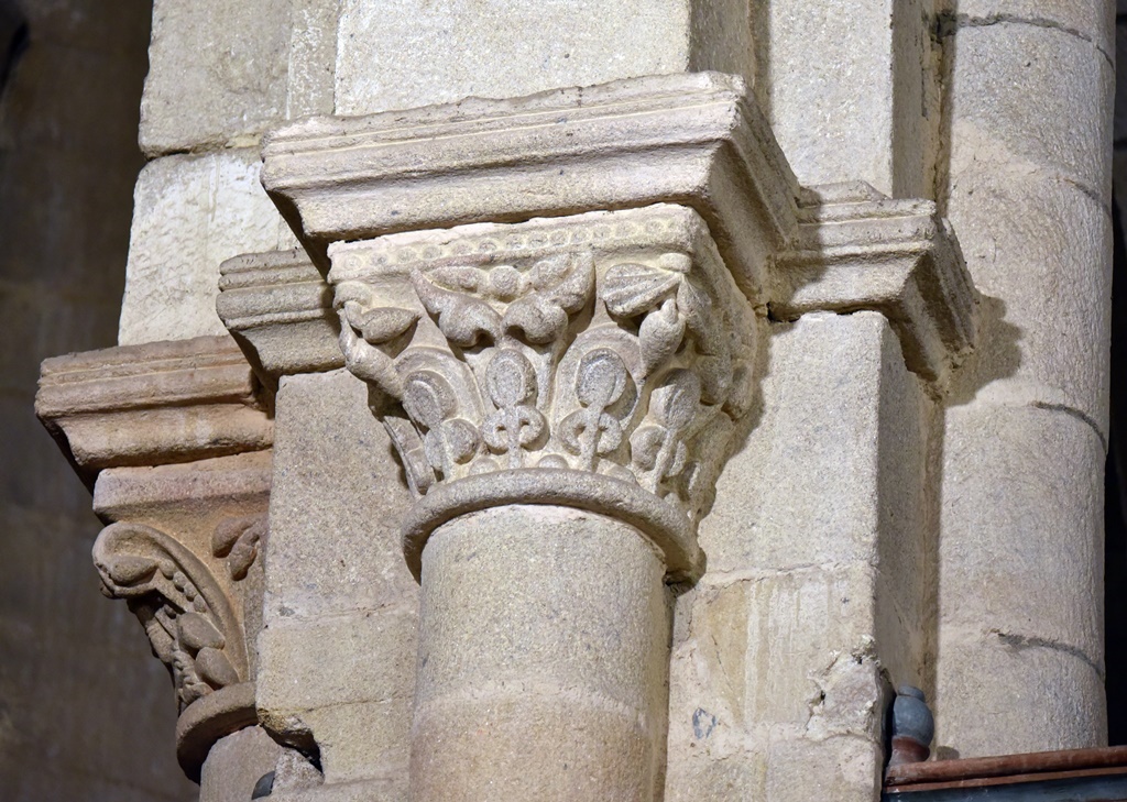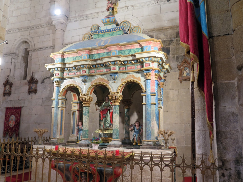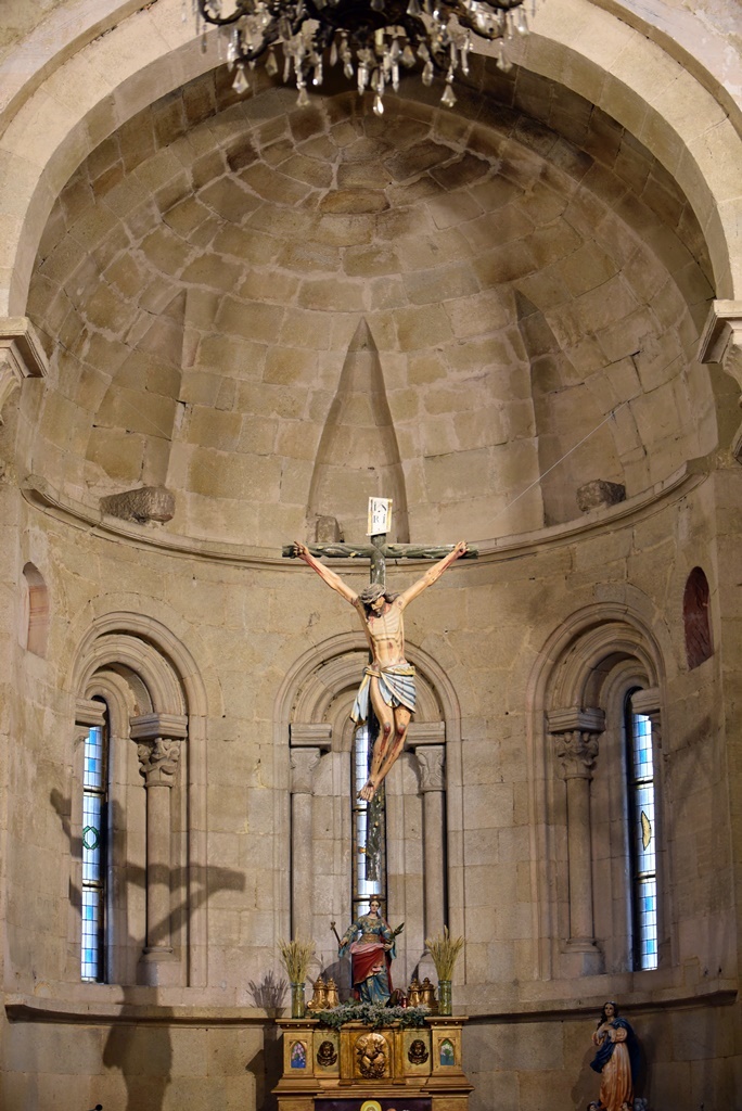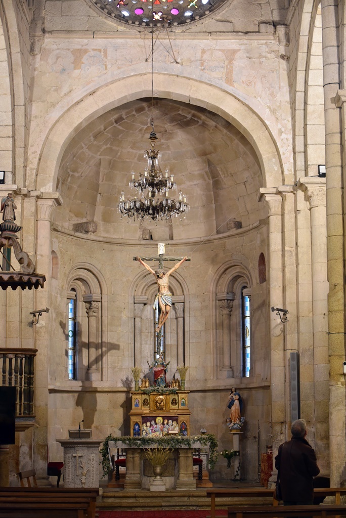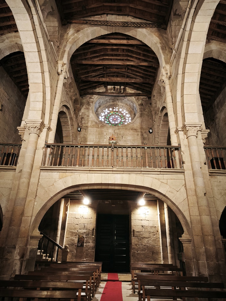 Y, por fín, se nos abre la iglesia de Santa Mariña de Augas Santas👇 , tan enorme como una catedral. Como no hay dicha completa, no podemos fotografiar los capiteles del arco toral, visibles desde el coro, porque este está cerrado en previsión de obras. Así y todo, la visita merece la pena.