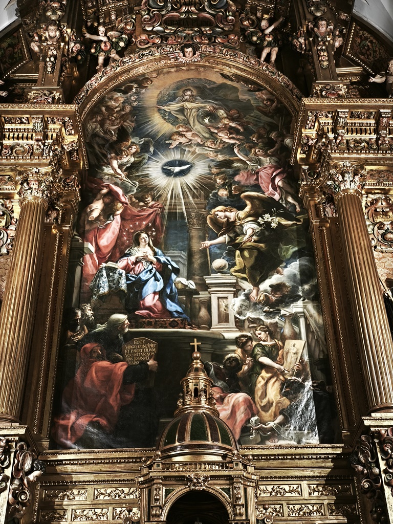 A Rizzi se añade Claudio Coello, quien con solo 20 años realizó el lienzo de la Anunciación o Encarnación del retablo mayor, obra de más de siete metros de alto, en la que, junto al tema central, en la parte inferior desarrolla un tratado teológico, uniendo a profetas y sibilas del Antiguo Testamento, y en la superior representó al Espíritu Santo y a los ángeles de la corte celestial, con gran colorido, un dominio sorprendente de la técnica y una novedosa iconografía.