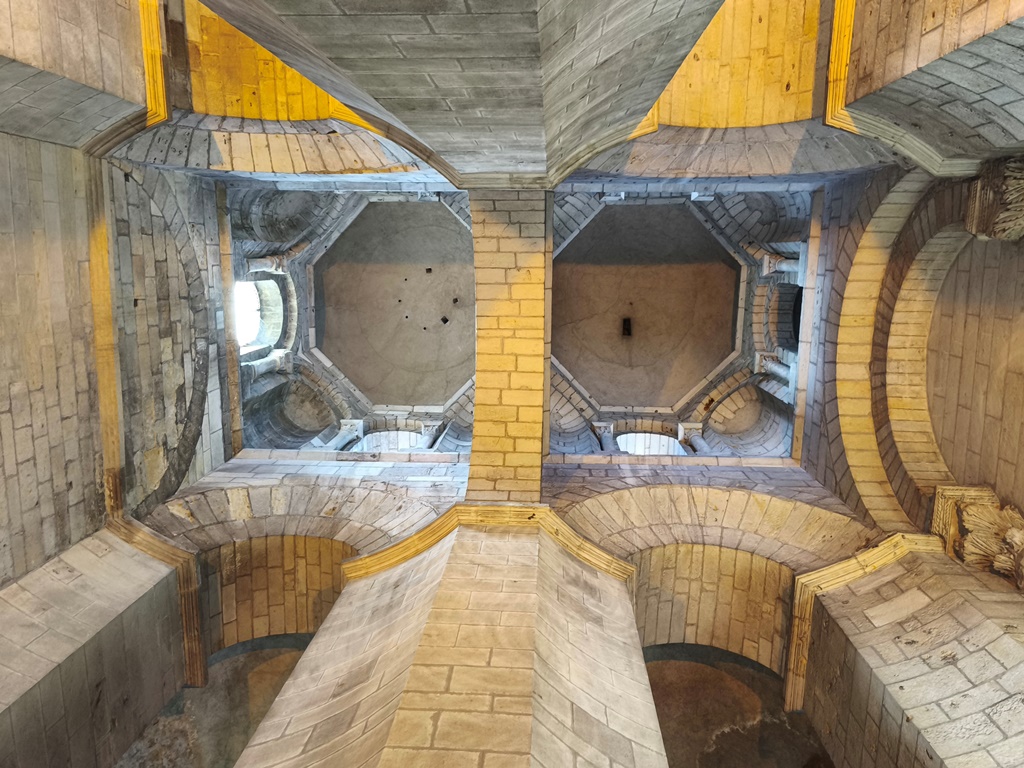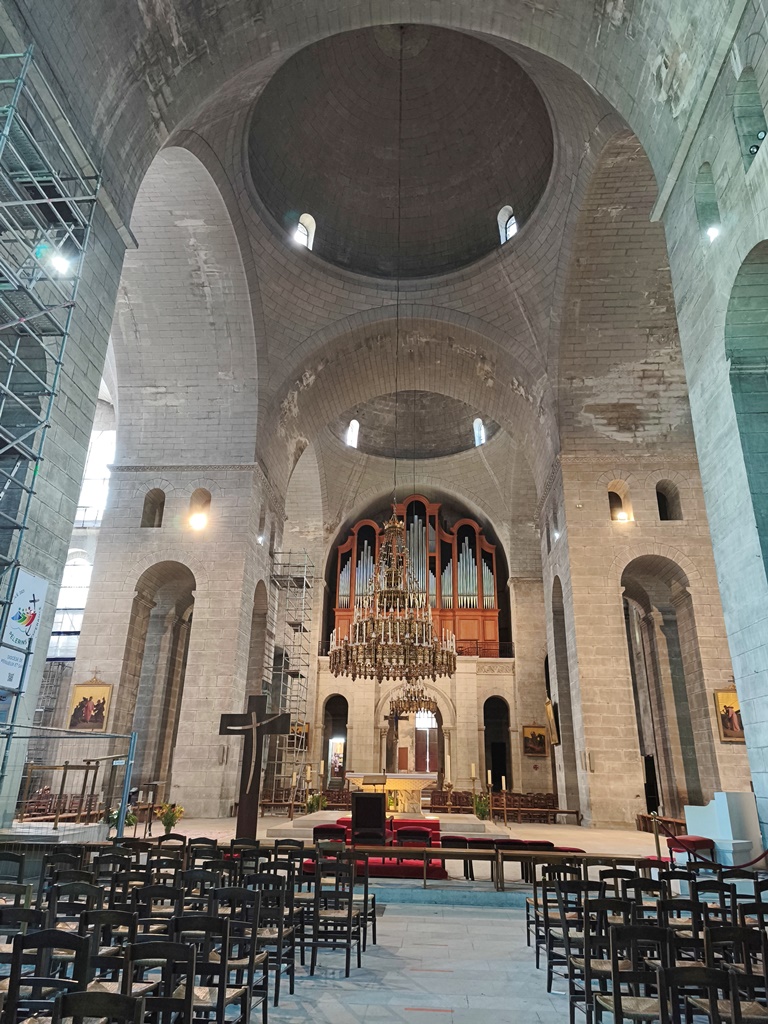 Sus cúpulas sirvieron de modelo a la iglesia del Sacre Coeur de París. El interior es de planta de cruz griega, cubierta con cinco cúpulas que recuerdan a la iglesia de los Santos Apóstoles en Constantinopla. La riqueza ornamental es exuberante 👇.