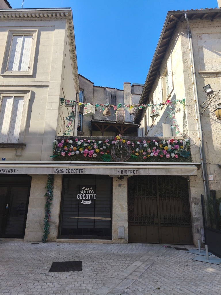 Para nuestra sorpresa, la totalidad de los comercios están cerrados por la tarde. Solo bares y restaurantes permanecen abiertos. Optamos por cenar en el restaurante del hotel, junto al río, teniendo a la vista un curioso edificio que parece sostenerse en precario equilibrio. Impresión errónea, pues se trata del puesto de vigilancia sobre el puente de Tournepiche, construido en 1347.
