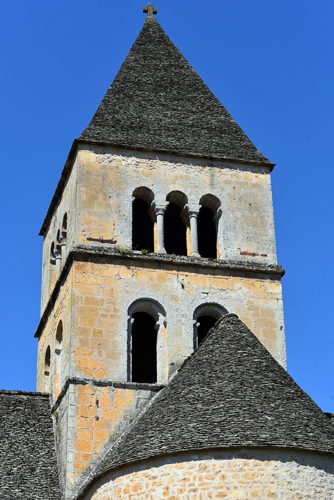 La iglesia del siglo XII es lo que queda de un priorato dependiente de Sarlat. Es de nave única con ábside y absidiolos. La restauración acometida tras la inundación de 1960 descubrió antiguos frescos en las bóvedas del ábside.