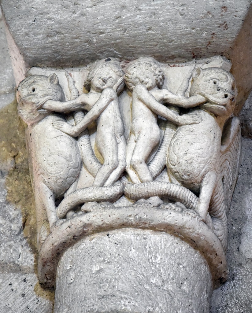 Hemos llegado a Souillac a media tarde y nos acercamos a la iglesia con temor de encontrarla cerrada. Tenemos suerte, está abierta y seguirá estando durante el largo rato que permanecemos. Somos los únicos visitantes, testigos privilegiados y admiradores de la obra de los canteros medievales. Quienes trabajaron en esta portada conocían su oficio.