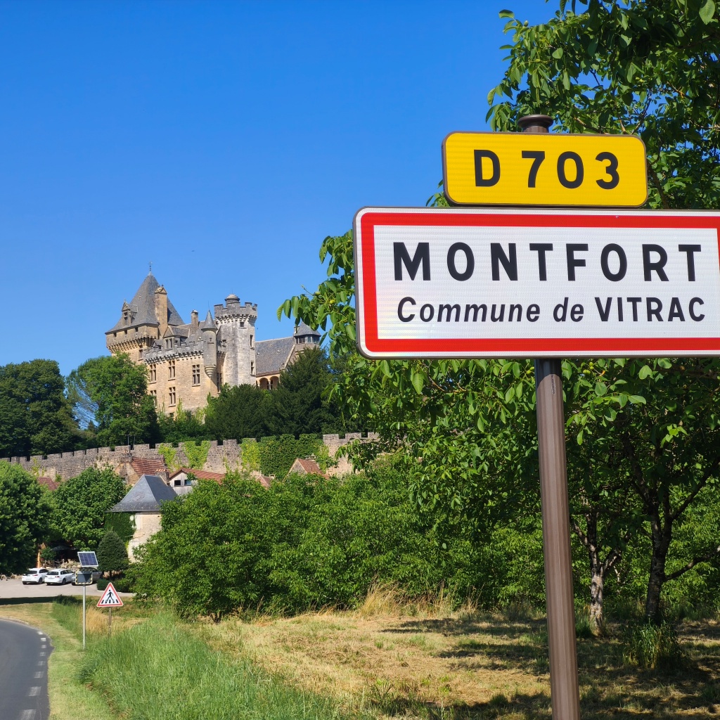 De camino a nuestro siguiente destino, Carsac-Aillac, nos encontramos con uno de los muchos castillos que se levantaron en la región, el de la familia Montfort. A Simon de Montfort le entregó el rey de Aragón Pedro I la custodia de su hijo Jaime, que habría de ser el Conquistador. Le hacemos una fotillo de nada y seguimos ruta.