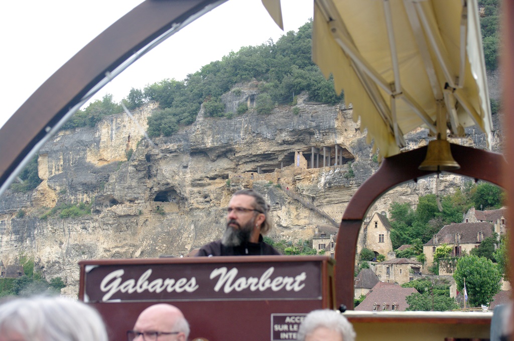Como en Burdeos por el Garona, también recorrimos un tramo del Dordoña embarcados en una gabarra como las que se utilizaron tradicionalmente para transportar el vino hasta la Roque-Gageac. He de decir que estos barquitos salen cada media hora, recorren el curso del agua durante una hora y al menos en el día que estuvimos nosotros, iban siempre llenos Los jubilados zascandiles sentimos una sana envidia de cómo cuidan los franceses su patrimonio.