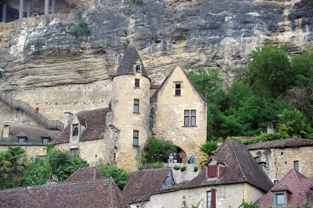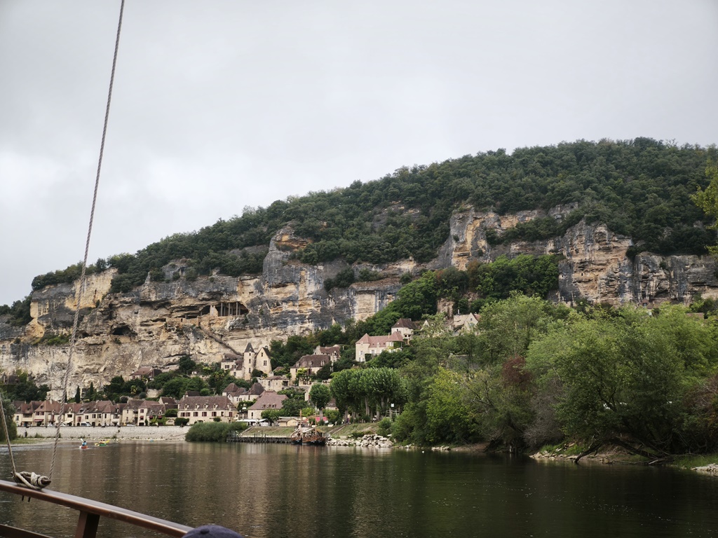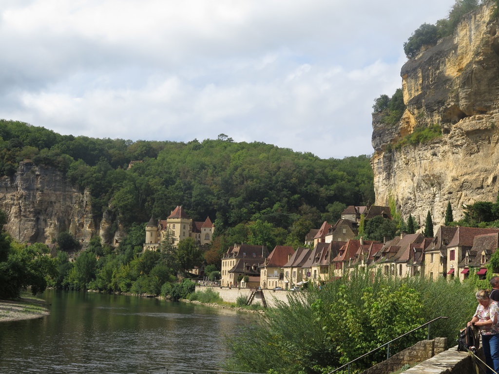 Ya quedó dicho que otro de los encantos del Perigord-Dordoña son sus paisajes, las enormes cortadas cinceladas por el curso de los ríos Dordoña. El pueblo de La Roque-Gageac👇 sirve de ejemplo. Es uno de esos lugares que te dejan con la boca abierta. No hay nada discordante en el paisaje urbano ni en el río que le sirve de espejo.