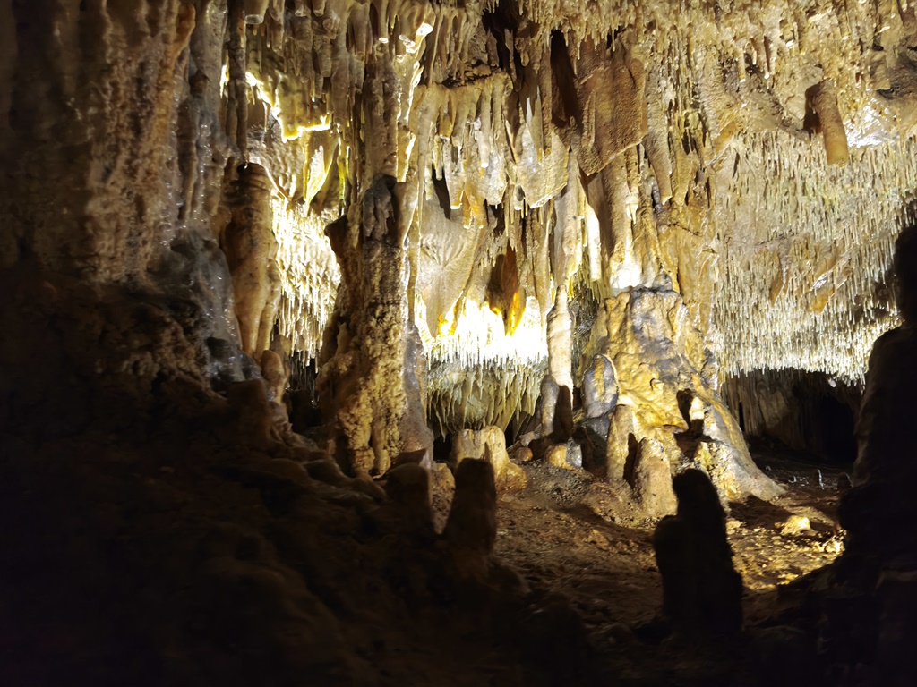 Es típico del lugar el helado de fresa, pero durante nuestra visita nos acompañó la lluvia y no apetecía demasiado. Lo que sí hicimos fue visitar la cueva natural que se encuentra bajo el casco urbano. No está mal pero tampoco es para tirar cohetes si conoces otras del mismo tipo. Y no dejan hacer fotos.