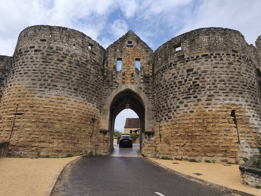 Domme👇 es una bastida, una ciudad fortificada, con plazas cuadradas y calles que se cruzan en ángulo recto, mandada construir en 1281 por el rey Felipe III en un acantilado que domina el valle del Dordoña. Tiene cuatro puertas, con sus torreones defensivos: la de Tours, de la Combe y del Bos. La ciudad entera está muy bien conservada, una auténtica ciudad medieval. En la puerta de Tours fueron encarcelados los templarios, dejando en sus paredes grabados aún visibles.
