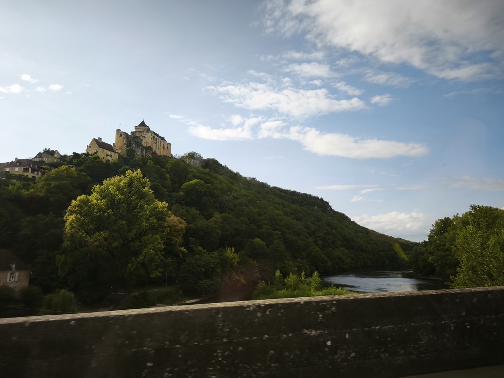 Llegamos a Beynac👇 bien comidos en un restaurante junto al río. El coche nos deja prácticamente a la puerta de la alcazaba, después de un ascenso que de ninguna manera hubiéramos podido hacer a pie.