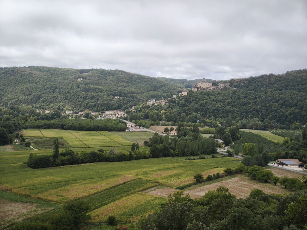 Desde el Belvédère, una elevación de cien metros sobre el valle se puede contemplar una amplia panorámica, distinguiéndose el castillo de Castelnaud.