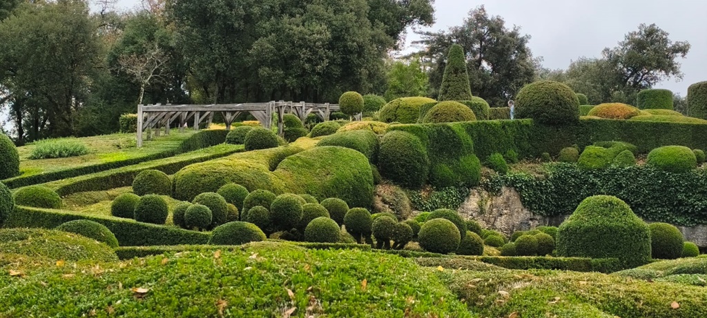 El parque tiene una extensión de 22 hectáreas, con más de seis kilómetros de senderos, con cascadas, miradores, rocallas, 150.000 bojes centenarios, podados a mano, una obra maestra del arte topiario. El recinto está dispuesto para el ocio familiar, con lugares para pícnic, juegos infantiles, o un restaurante sobre el valle que invita a quedase a vivir. Tiene otro atractivo especial para los jubilados andariegos: un coche eléctrico que va recogiendo a los visitantes agotados y los devuelve a la entrada. Que Leonor de Aquitania los bendiga.