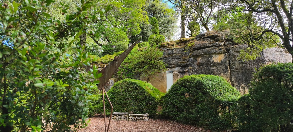 El palacete de Marqueyssac👇 es poco más que una casona de buena familia, amueblada al estilo del siglo XIX. Lo que le hace admirable es la enorme extensión ajardinada que le rodea y los paisajes y castillos que se divisan dondequiera que se mire: Castelnaud, Beynac, La Roque Gageac, Les Milandes…